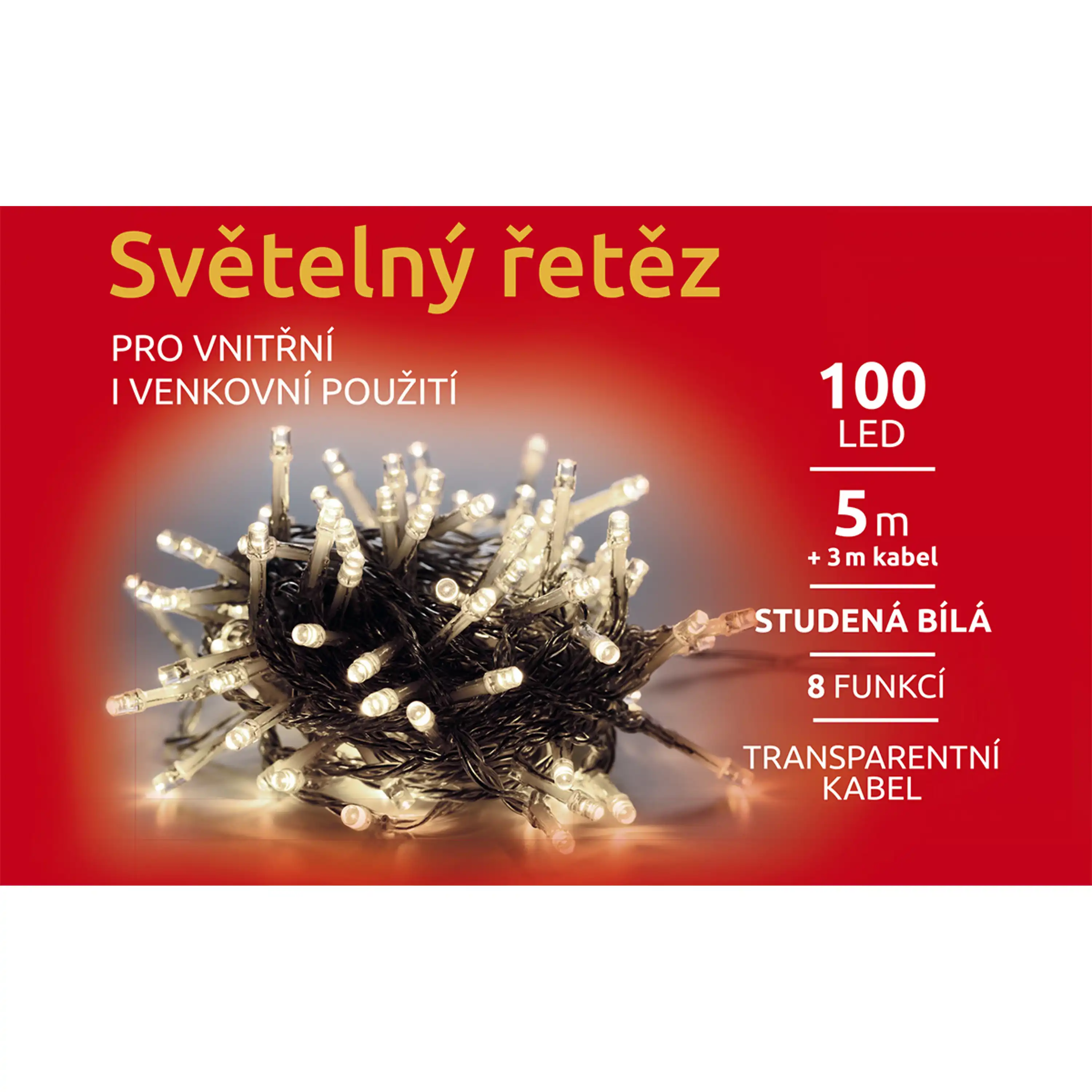 Světelný řetěz 100 LED - studená bílá - transparent - mód