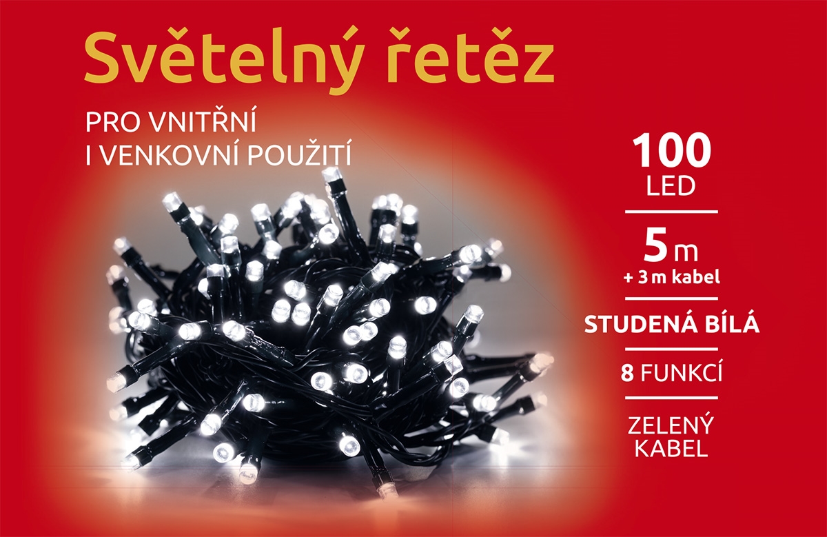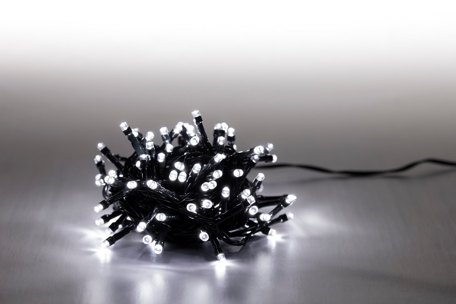 Světelný řetěz ozáří váš interiér i exteriér. Vhodný na okno, stromek, balkón i dům. Díky LED diodám ušetříte až 90 % energie oproti klasickým žárovkám. Průměrná životnost LED diody je cca 2 000 hodin svícení. Studená bílá barva osvětlení, se světelnými efekty - 8 módů.