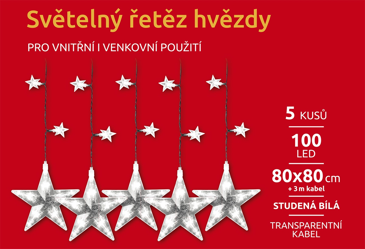 Vánoční řetěz s pěti hvězdami ozáří váš interiér i exteriér. Rozveselte vaše okna nebo zahradní altánek a nechte se pohltit překrásnou vánoční atmosférou.