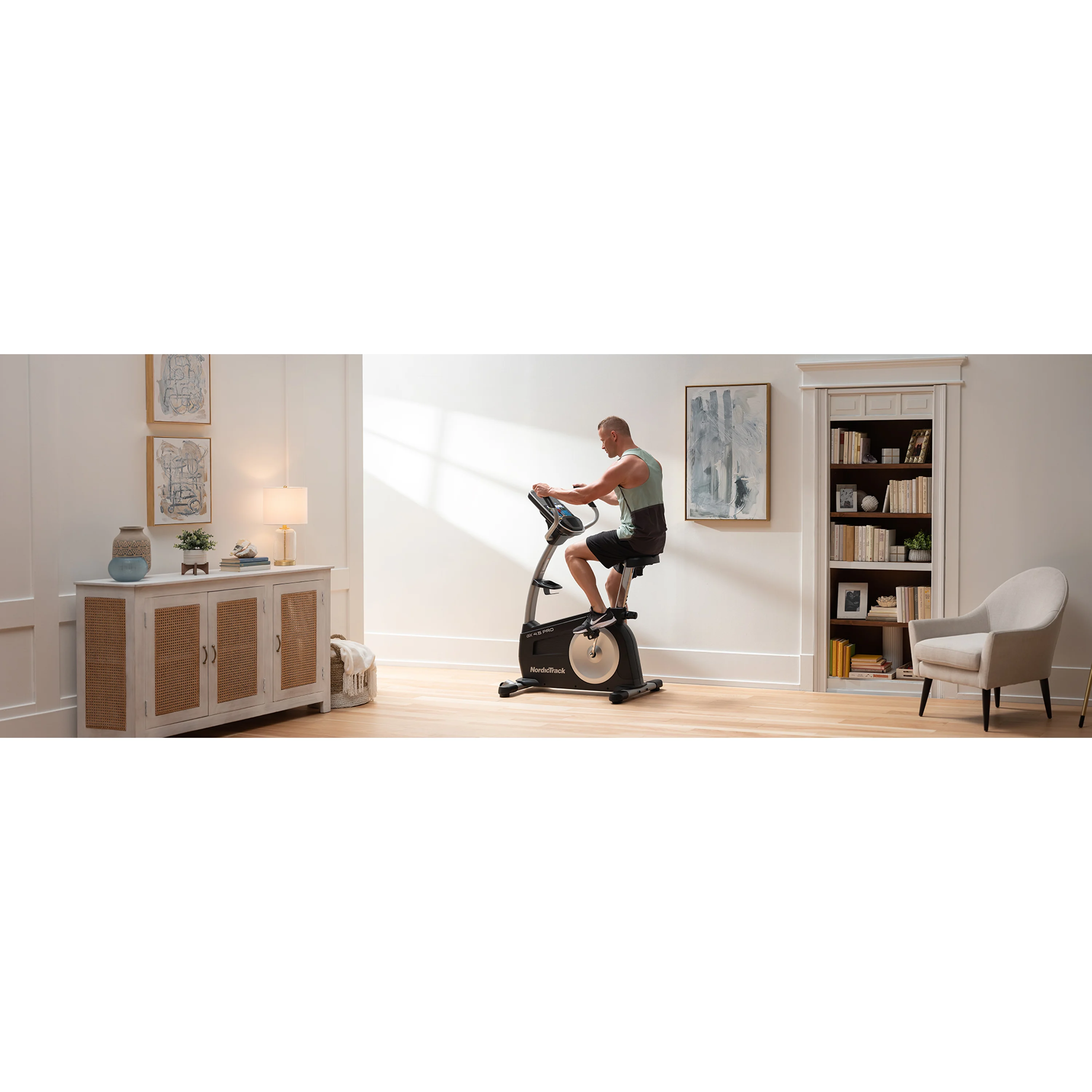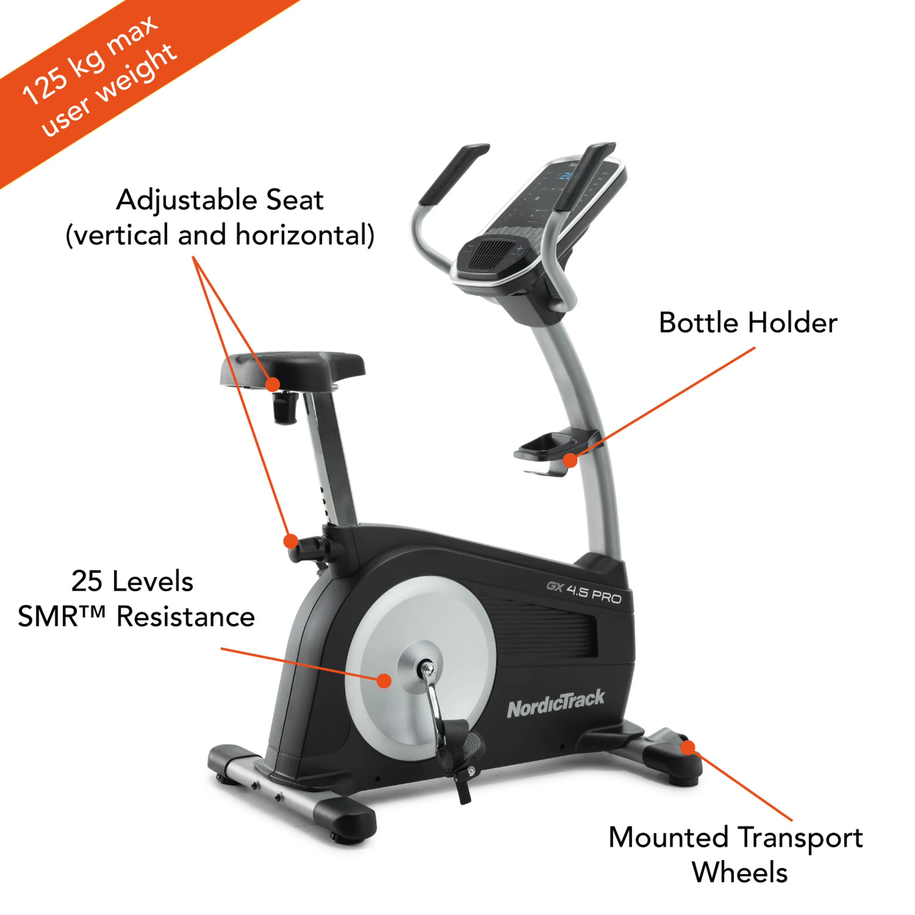 NORDICTRACK GX 4.5 Pro je dalším ideálním trenažérem pro domácí využití. Poskytne svým majitelům domácí rotoped s kvalitní mechanikou a ergonomickým rámem s nosností až do 125 kg váhy cvičence. Setrvačník o hmotnosti 9 kg a magnetický brzdný systém zajistí tichý a plynulý chod stroje při vašem tréninku. Zátěž se nastavuje elektronicky v rozmezí 1-25 úrovní. Jízdu na rotopedu si tak snadno dopřeje začátečník i zkušenější sportovec.