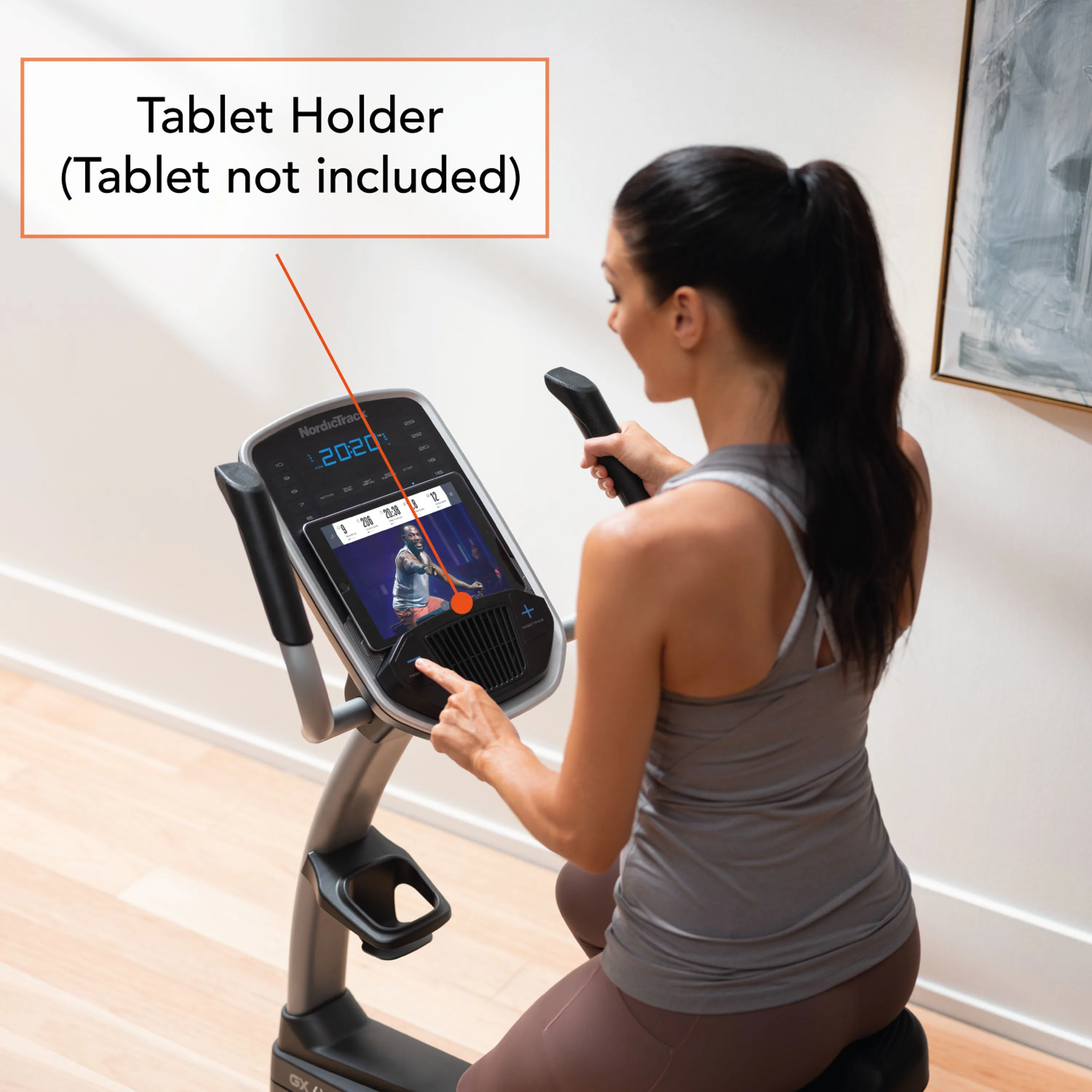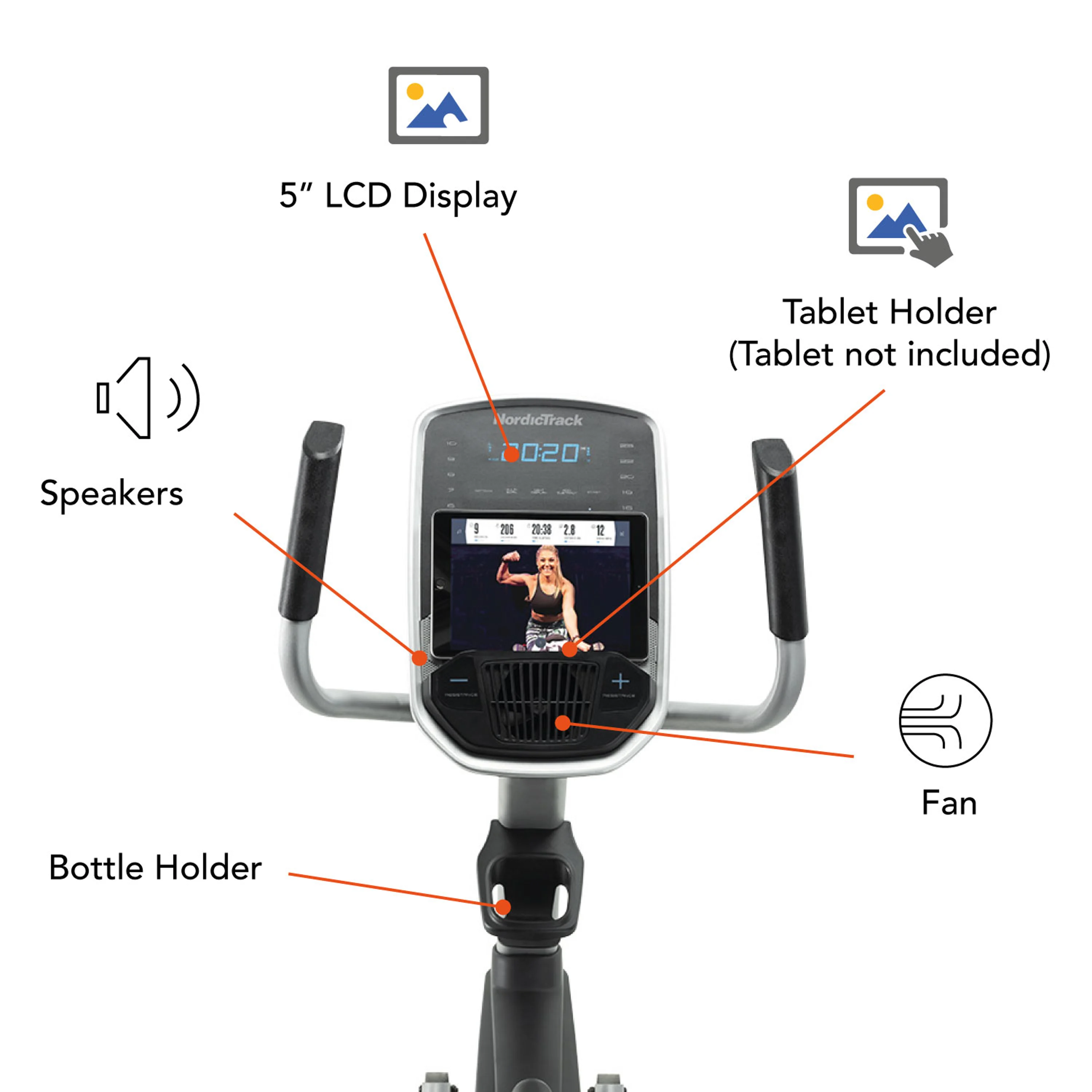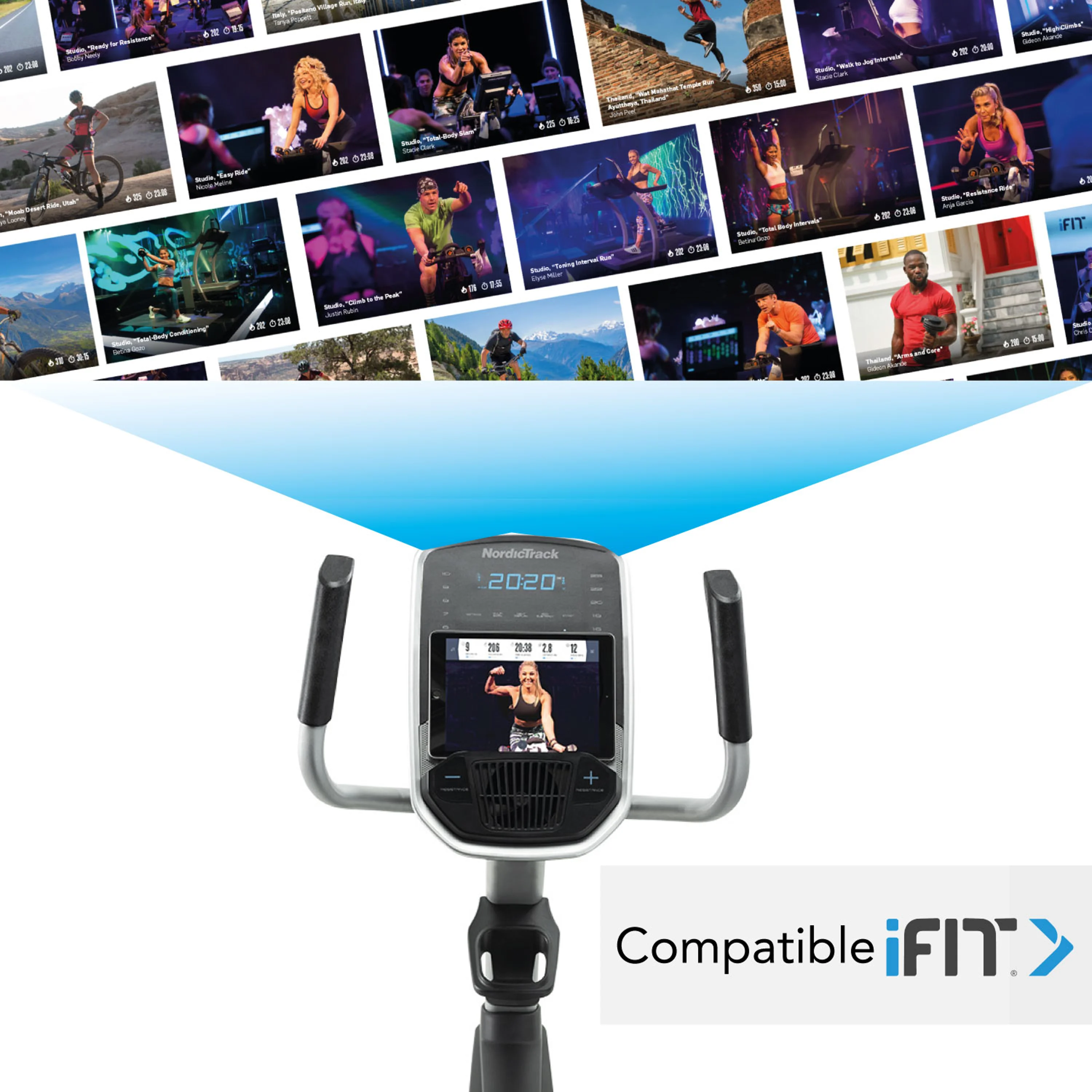 Na displeji najdete praktický držák na smartphone nebo tablet, díky kterým můžete využívat tréninkovou aplikaci iFIT. Při cvičení tak můžete projíždět trasy po celém světě nebo se inspirovat tréninkovými videi. Výsledky svého tréninku navíc můžete uložit a porovnávat v čase. Tablet není součástí dodávky.
