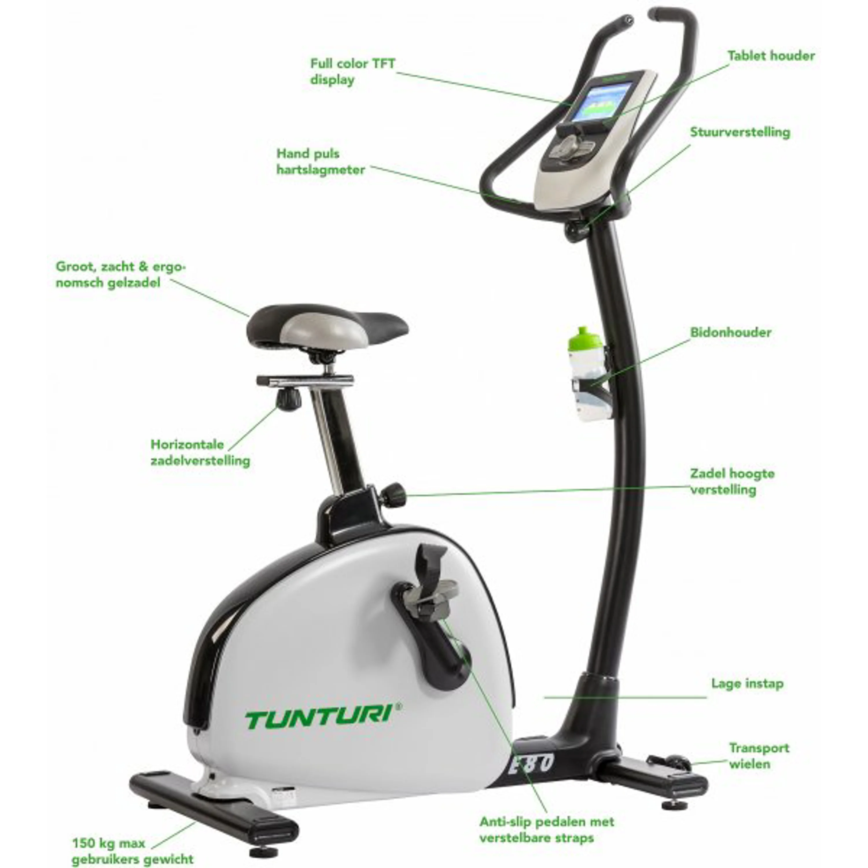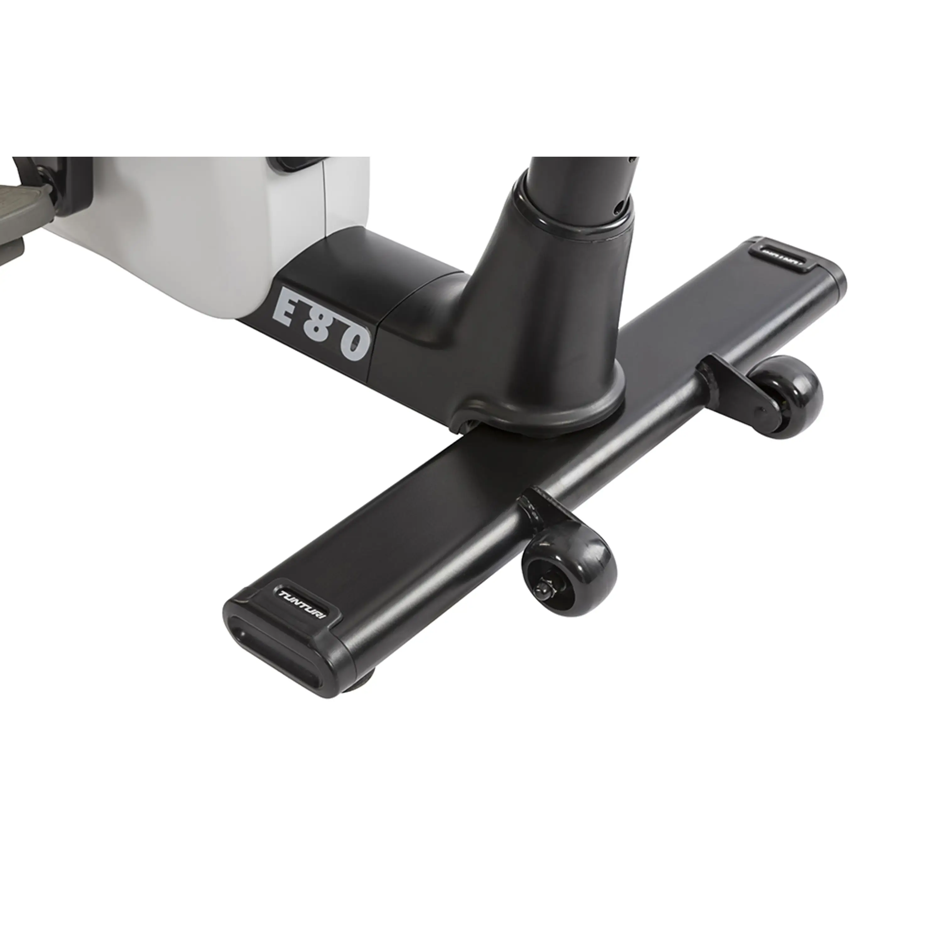 Rotoped TUNTURI E80 Endurance je trenažér vhodný do lehce komerčního prostředí, přičemž jeho špičkové komponenty zaručují dlouhou životnost i při využití těžšími osobami. Stroj za velmi příznivou cenu se hodí i pro pravidelný kondiční trénink. Rotoped disponuje vynikající mechanikou a kvalitní ergonomií rámu, takže si na něm pohodlně zacvičí drobnější postavy i osoby s vyšší postavou až do výšky 210 cm. Rotoped disponuje setrvačníkem o celkové váze 14 kg a indukčním brzdným systémem, což je velmi přesný systém z hlediska měření a kontroly tréninku. Nosnost stroje je max. 150 kg.