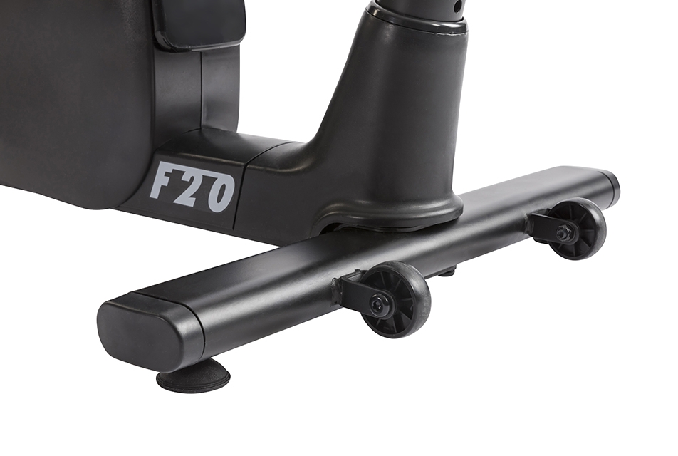 Rotoped je vybaven velice pohodlným sedlem, které je nastavitelné jak vertikálně, tak i horizontálně. Sedlo si tak lehce upravíte přímo na míru a navíc je možné přizpůsobit i sklon řídítek, což zajistí pohodlný trénink osobám různé výšky. Plastové pedály vybavené fixačními řemínky (klipsnami) drží bezpečně chodidlo na šlapačce. Předností modelu TUNTURI F20 Competence je nízký práh při nastupování a sestupování pro osoby se zdravotním hendikepem.