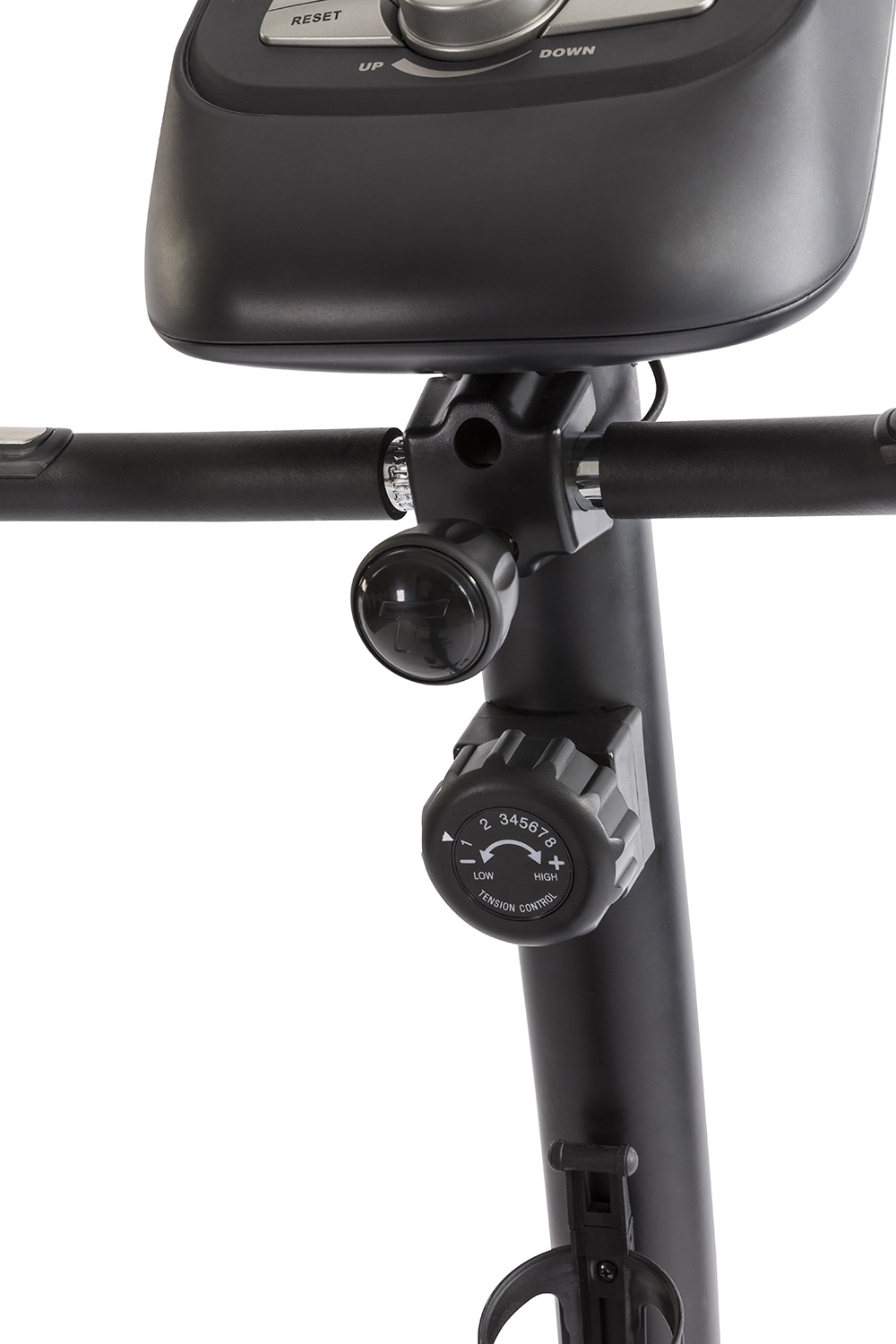 V průběhu cvičení můžete kdykoliv upravit zátěž (8 úrovní odporu), stačí pouze manuálně otočit regulátorem zátěže umístěným přímo pod řídítky a zátěž se okamžitě upraví.
