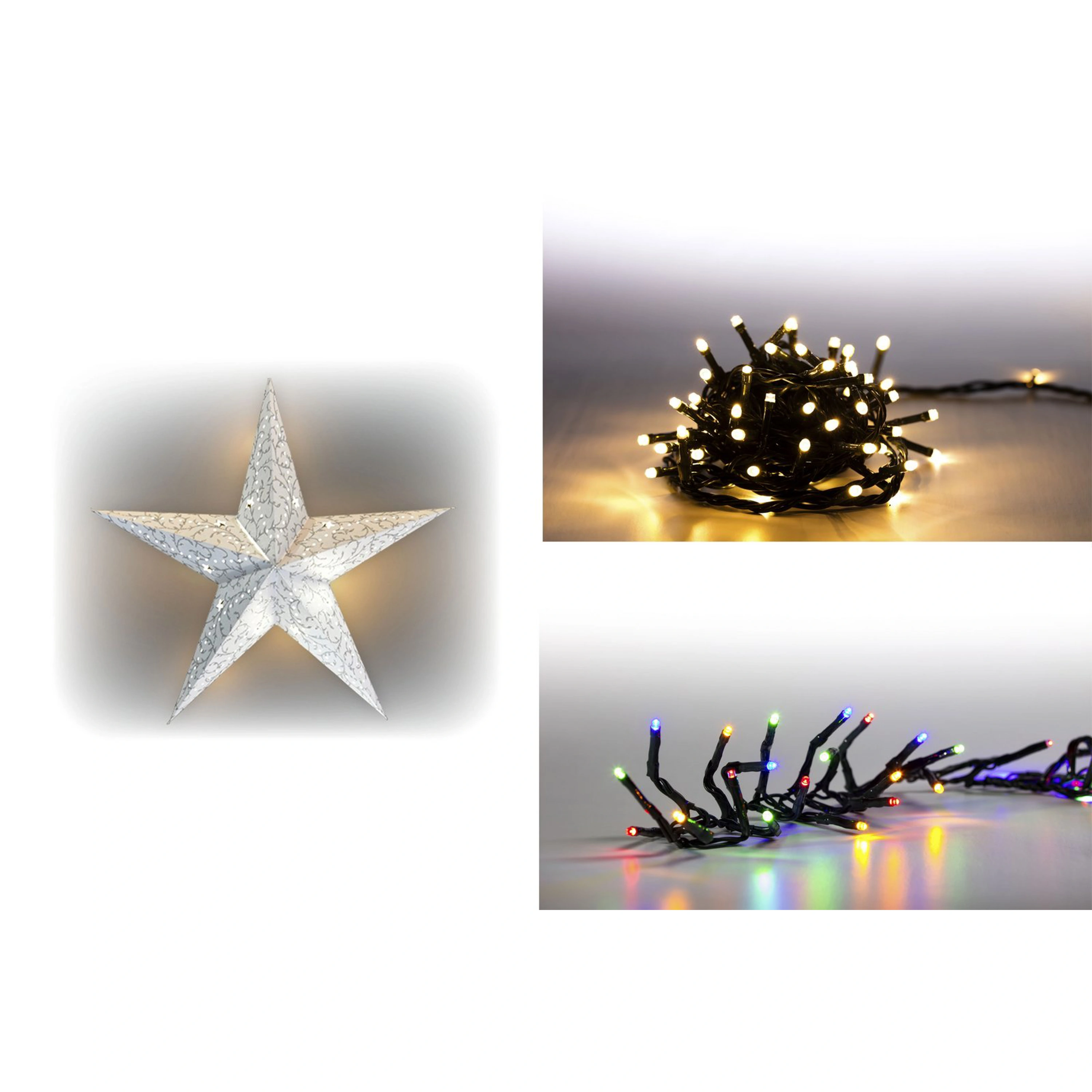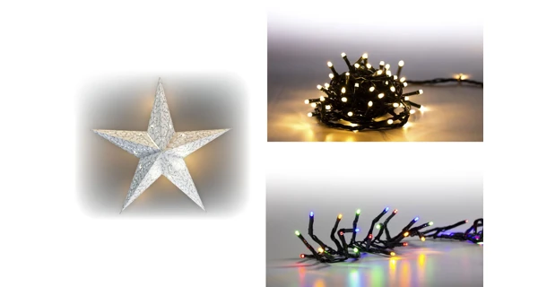 Sada LED osvětlení (Svítící hvězda LED + světelný řetěz 200 LED + světelný řetěz 100 LED)