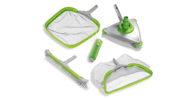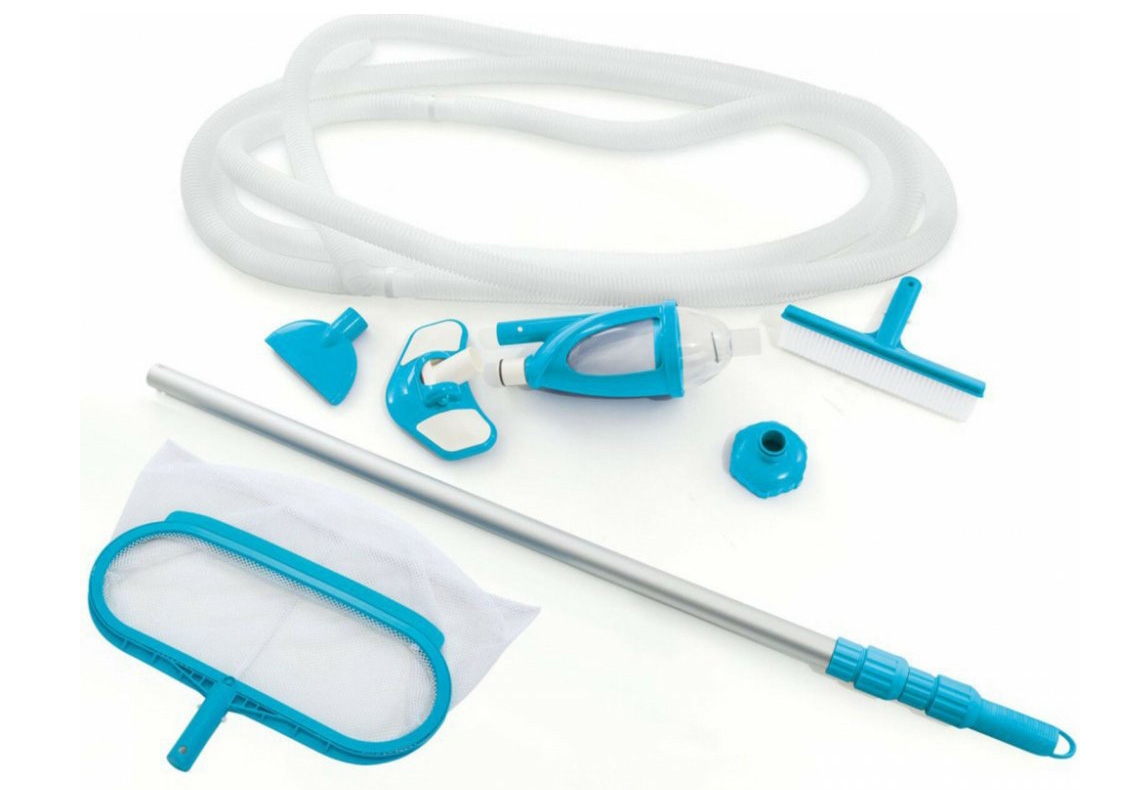 Komplatní sada Premium pro čištění nadzemních bazénů. Jednoduše napojíte na filtrační systém a můžete uklízet. Sada obsahuje vakuovou sací hlavu s rotačními kartáči. kartáč na stěny, hladinovou i dnovou síťku a teploměr.
