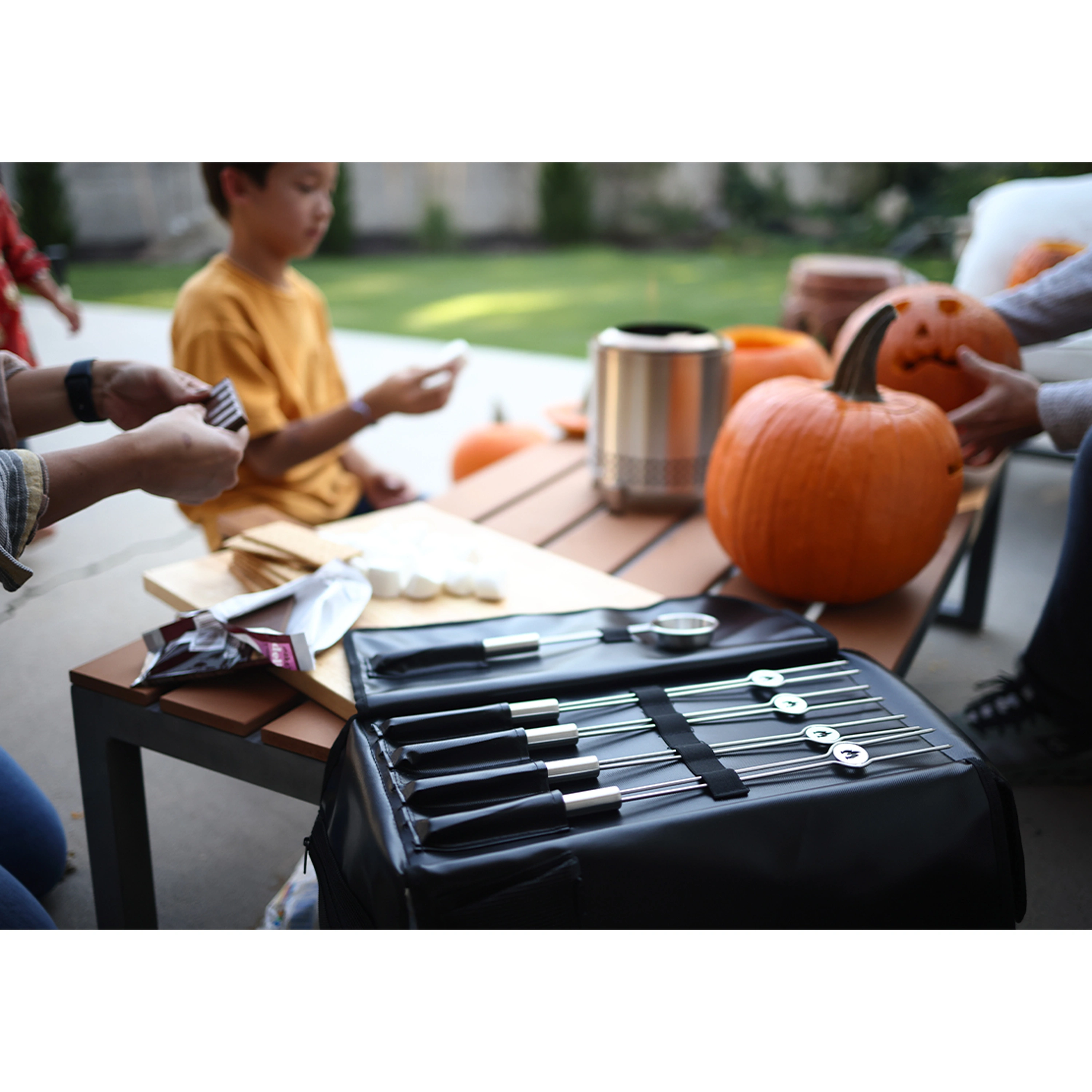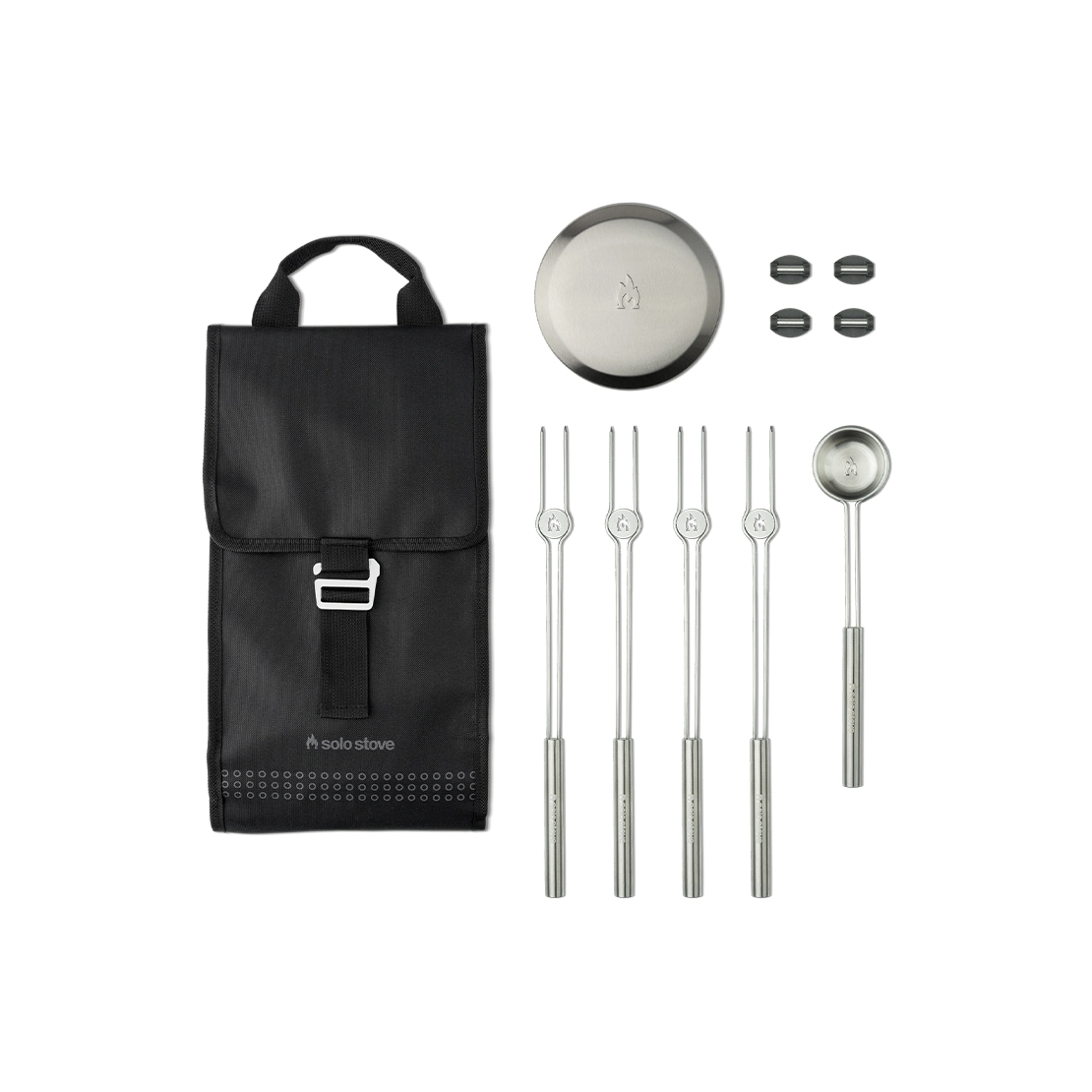 Sada příslušenství pro bezkouřová ohniště Solo Stove Mesa XL. Příslušenství je vyrobeno z nerezové oceli a dodáváno v praktickém kufříku s očkem pro zavěšení. Díky praktickým pomůckám můžete své stolní ohniště využít naplno.