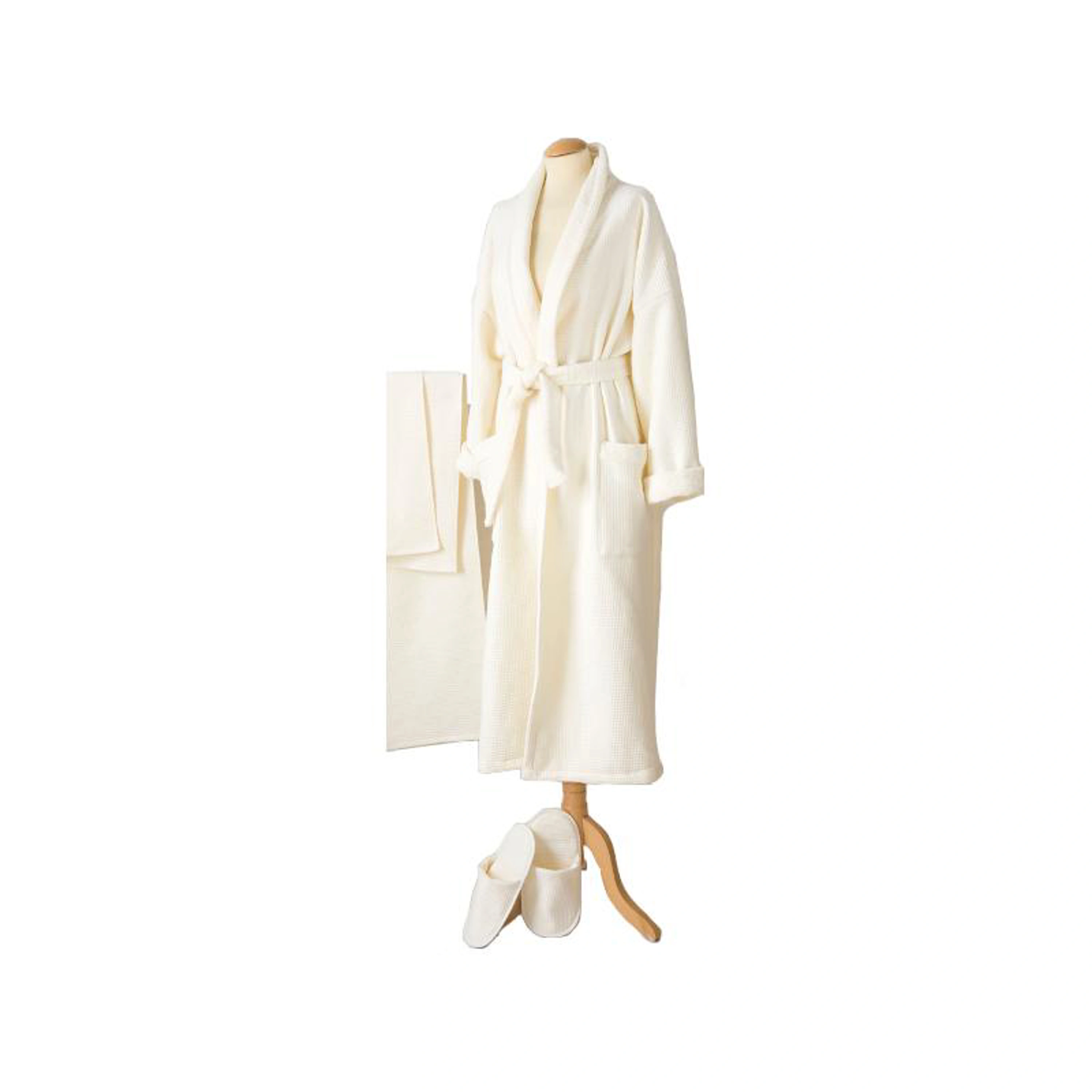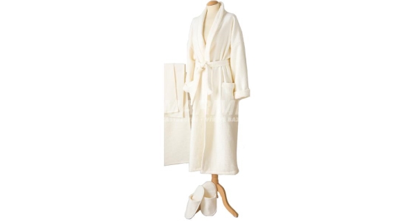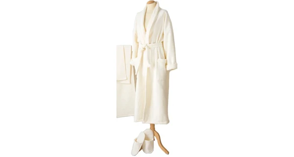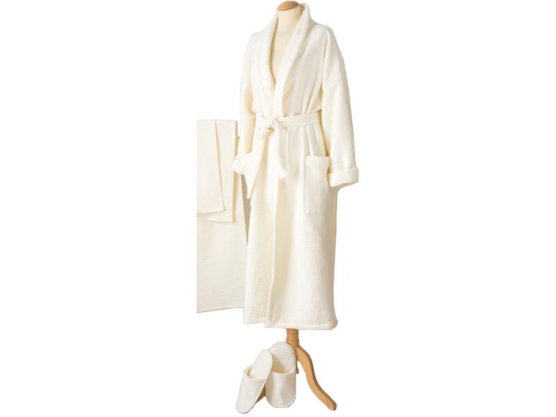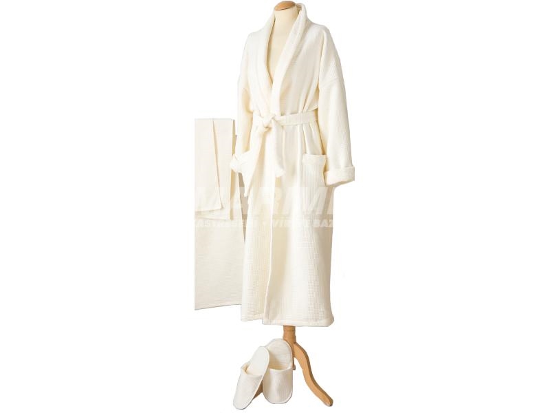 Sada Wellness obsahuje župan, osušku a pantofle. Jsou vyrobeny z materiálu s vlastnostmi klasického froté a vafle - je příjemný na dotek s extra vysokou rychlostí absorpce. Velikost sady je univerzální - pro muže i ženy.