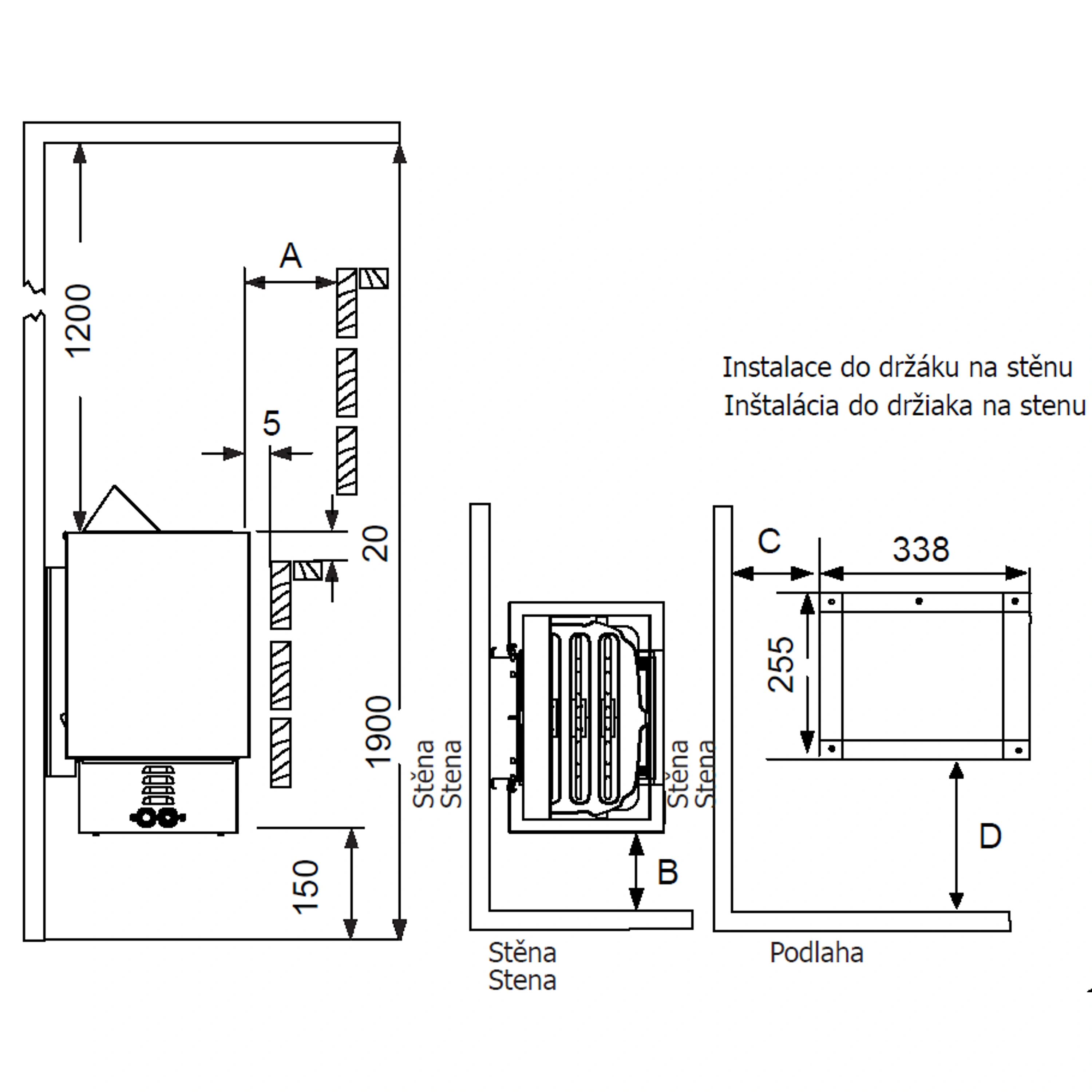 Bezpečnostní vzdálenost B ke stěně: 50mm