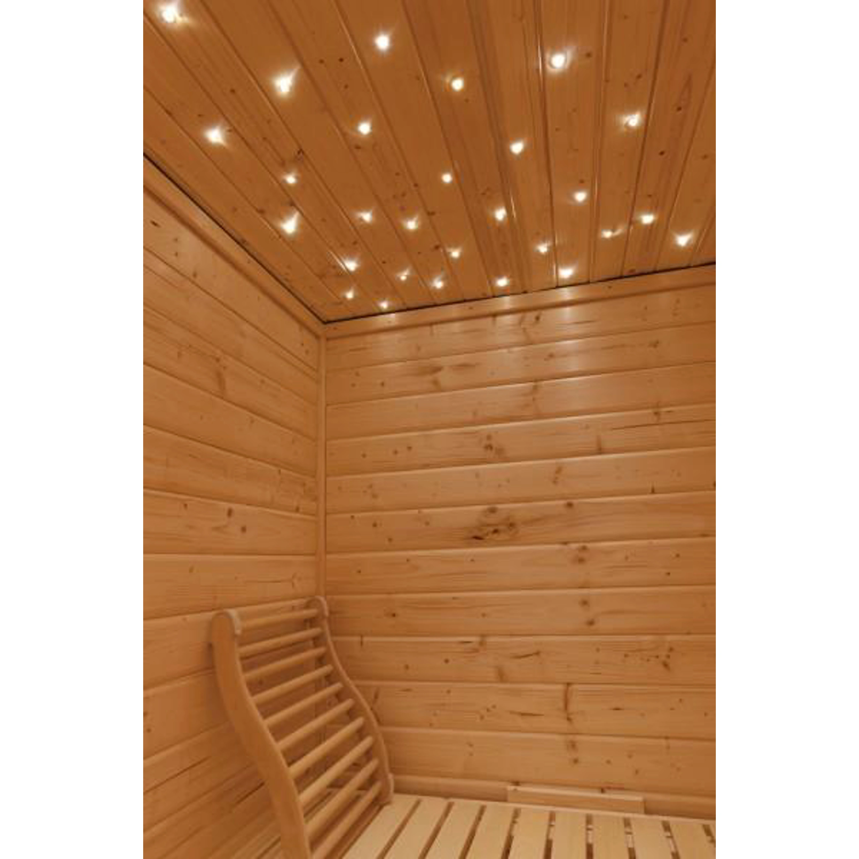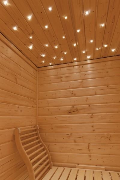 Saunové světlo - hvězdná obloha složená ze 40ti světelných bodů. Dálkovým ovládáním je možné měnit barvy na žlutou, zelenou, nebesky modrou, bílou a barvu lilla.