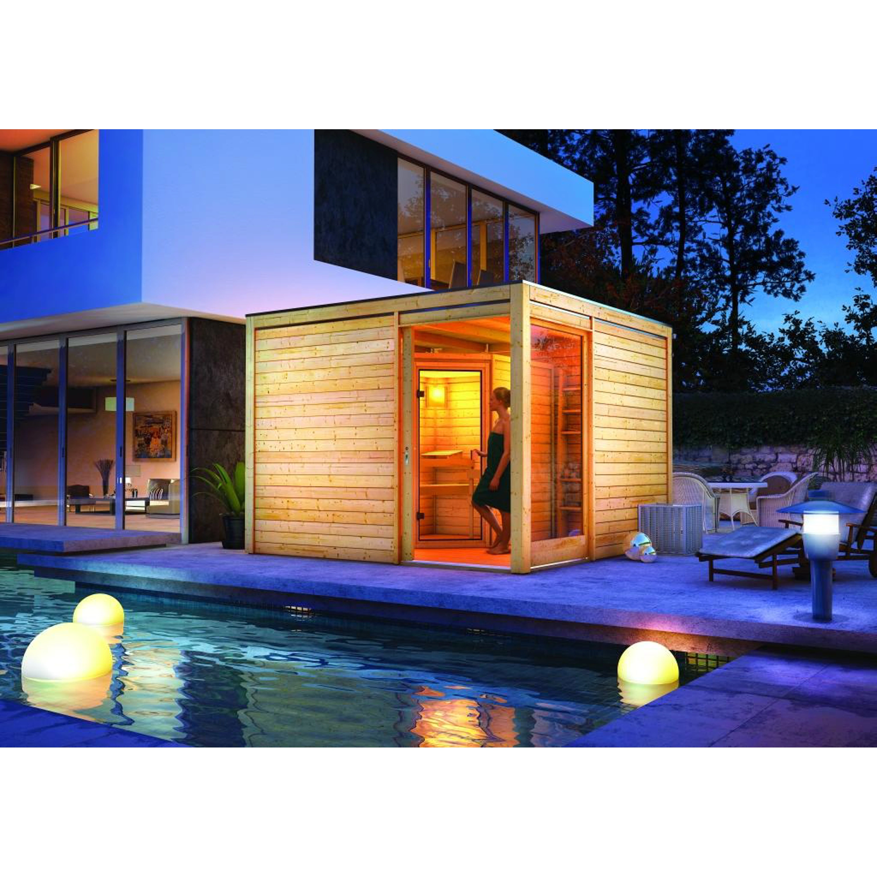 Saunový domek Cubus Premium s integrovanou finskou saunou Jarin Karibu umožňuje vychutnat si požitek ze saunování v soukromí a přitom ušetřit místo v domě. Saunový domek je možné postavit třeba na zahradě nebo jako přístavbu rodinného domu.