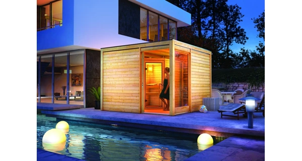 Saunový domek Cubus Premium s integrovanou finskou saunou Lena Karibu umožňuje vychutnat si požitek ze saunování v soukromí a přitom ušetřit místo v domě. Saunový domek je možné postavit třeba na zahradě nebo jako přístavba rodinného domu.