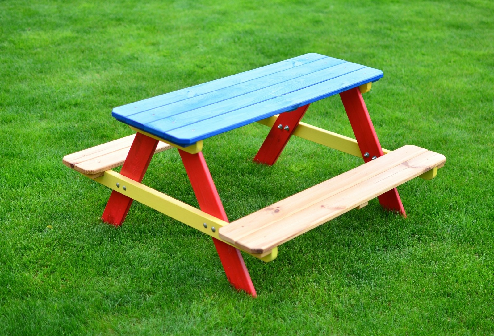 Dětská dřevěná souprava PIKNIK slouží k posezení či hře pro ty nejmenší. Děti si mohou společně malovat, odpočívat nebo si dát svačinku. Veselé barevné provedení - žlutá, modrá, červená, přírodní. Zahradní dětská sestava Piknik se sestává ze stolku a dvou lavic připevněných k sobě. Celý dětský set je vyroben z kvalitní masivní borovice. Nosnost dřevěné soupravy je 2x30kg. Sestava je vhodná na zahradu, nebo do dětských školek a podobných zařízení.
