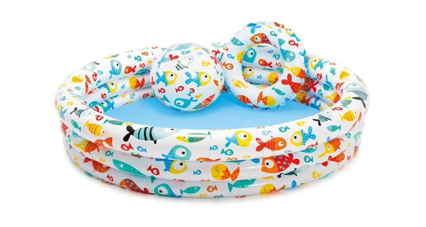 Bazénový set ocení hlavně nejmenší členové rodiny. Set obsahuje vše, co malí plavci pro svoje první tempa potřebují – nafukovací bazén, plovací kruh a míč. Všechny části mají veselý potisk s mořskými motivy.
