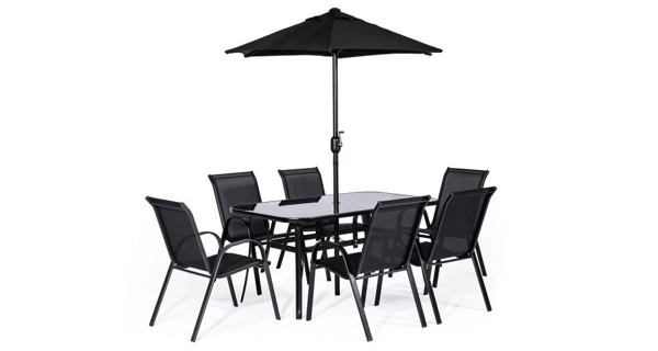 | Balení obsahuje | 1x stůl, 6x židle, 1x slunečník |