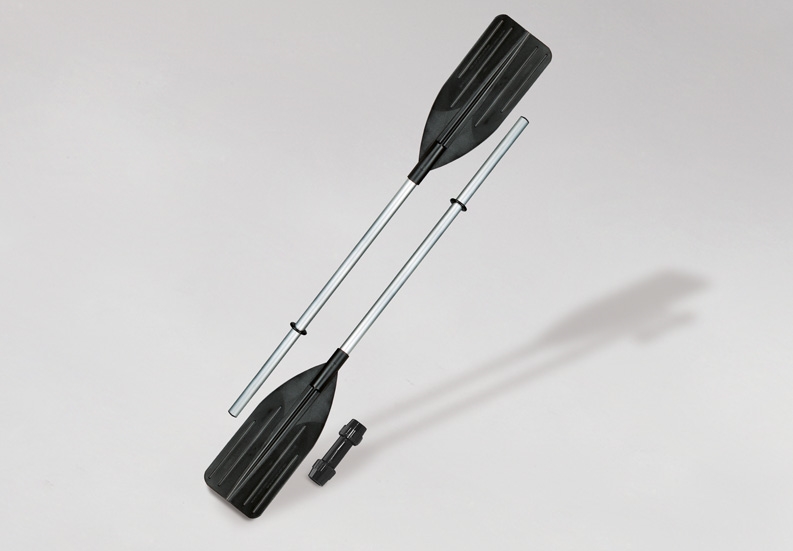 Tento výrobek může být použit samostatně jako 122 cm vesla nebo po spojení vytvoří 244 cm dlouhé pádlo. Gumový kroužek zabraňuje posunutí vesel, lehce zapadá do držáků vesel. Možnost sesazení do sebe pomocí rychlospojky, která je součástí setu.