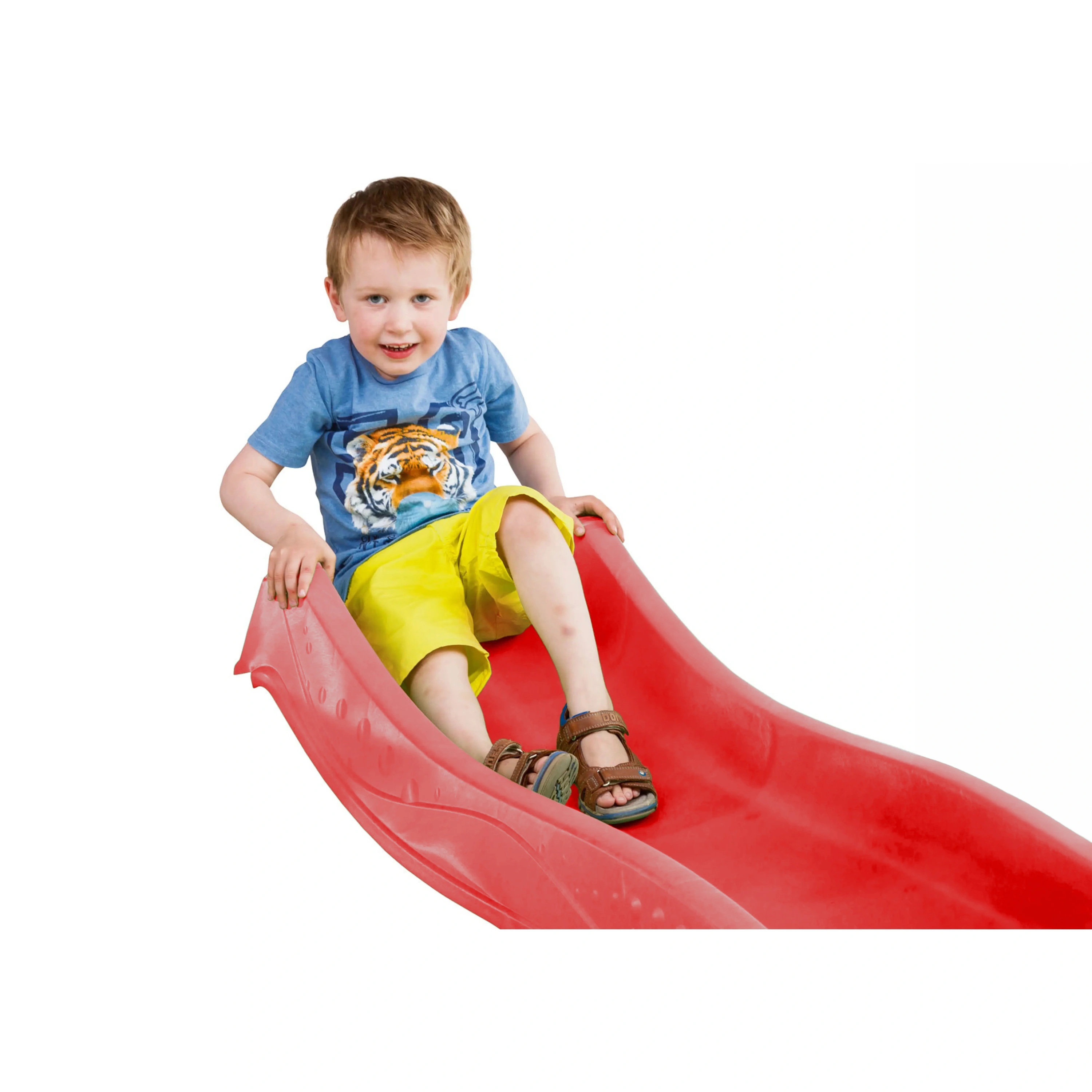 Kvalitní dětská červená skluzavka s přípojkou na vodu je vyrobena z pevného a odolného plastu, který dlouho drží barvu, snese UV záření i poškrábání a je navržen tak, aby kluzná plocha byla příjemně hladká. Díky tomu poskytuje bezpečný a plynulý skluz pro děti přibližně od 3 do 10 let. Nosnost je zhruba 50 kg, což je ideální pro mladší děti i jejich kamarády.