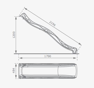 Kvalitní dětská skluzavka s přípojkou na vodu je vyrobena z pevného plastu. Přídavnou skluzavku lze umístit k většině dětských hřišť s nástupní výškou 120 cm.
