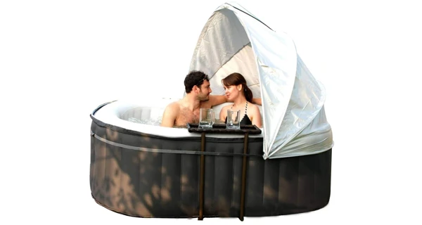 - Instalace slunečníku je velmi snadná - jednoduše se upevní po obvodu vířivky pomocí gumového popruhu.