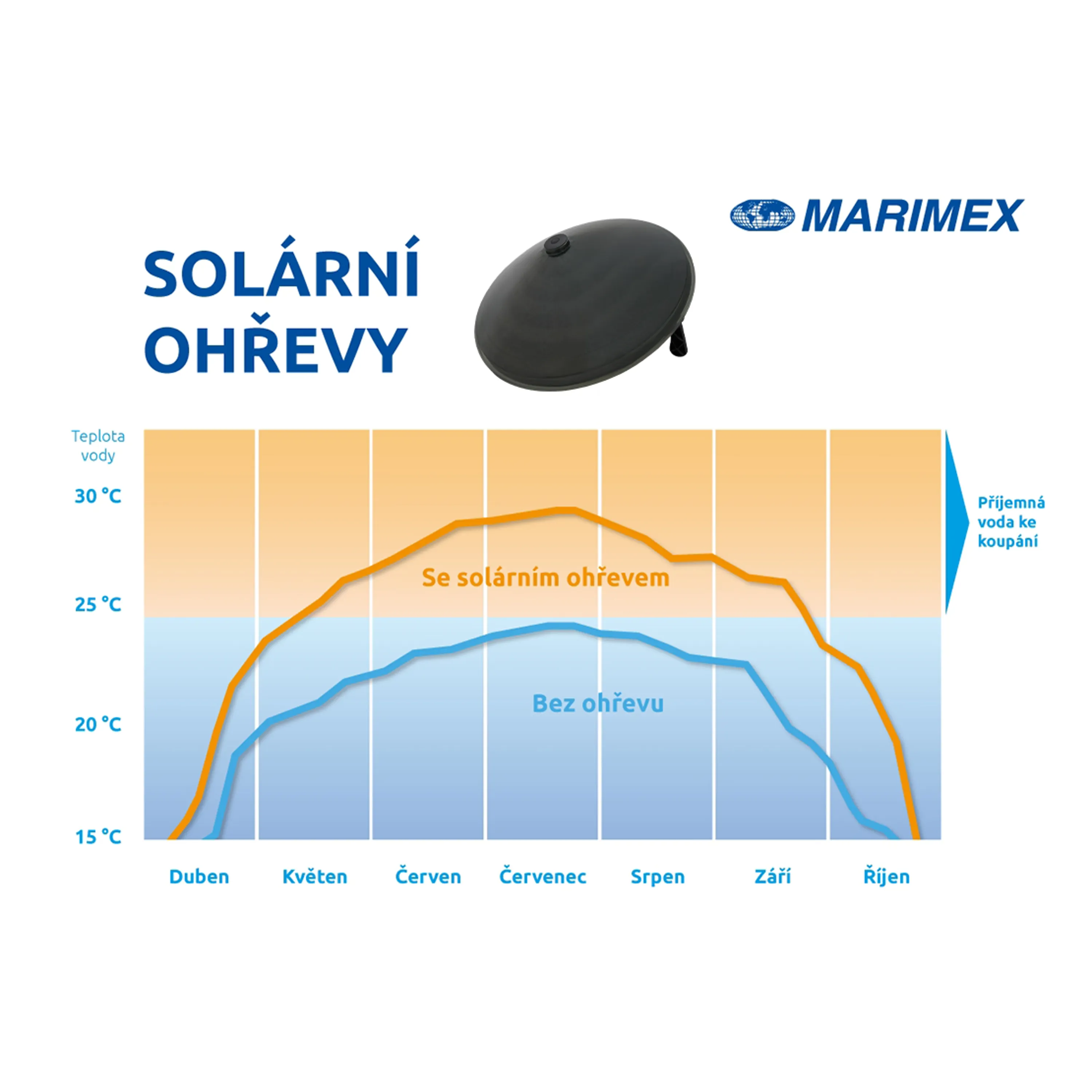 Prodloužení koupací sezónySolární ohřev učiní koupání komfortnějším a prodlouží koupací sezónu o několik týdnů. Příjemné prostředí ke koupání poskytne od začátku jara až po první ryze podzimní dny. |