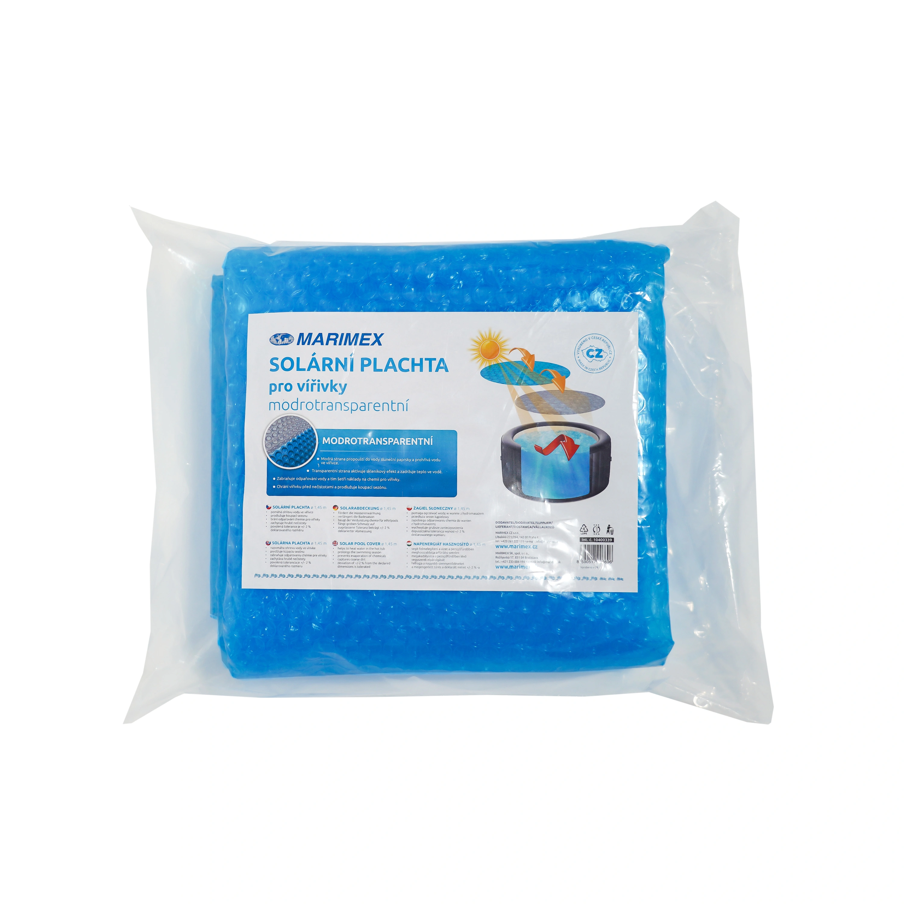 Solární plachta je vhodná pro všechny vířivky s průměrem hladiny 1,65 m. Síla plachty je 250 micronů.