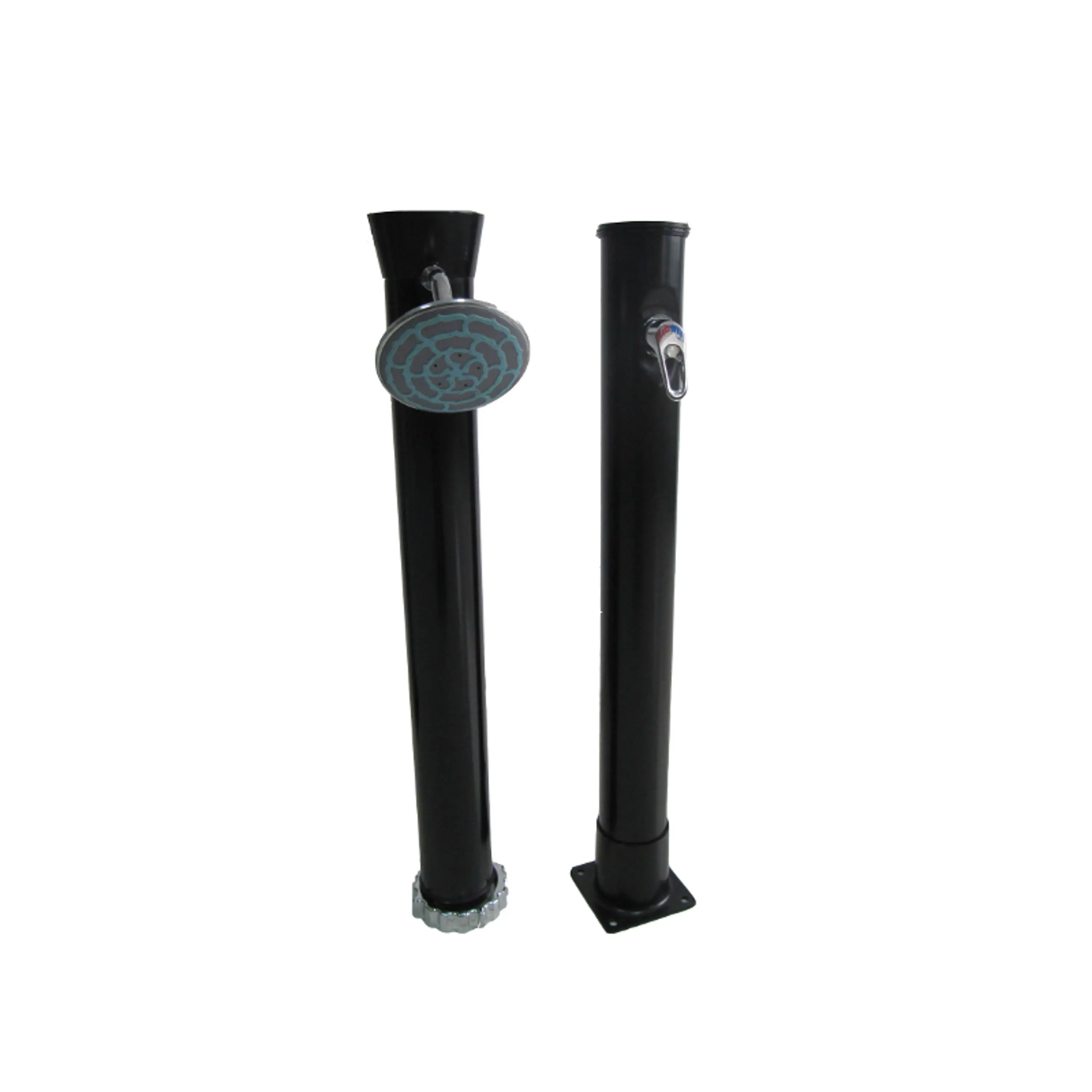 Solární sprchy se dají využívat samostatně, ale můžou tvořit i doplněk k bazénům. Pomáhají tak před zbytečným znečištěním bazénové vody například od trávy či hlíny.