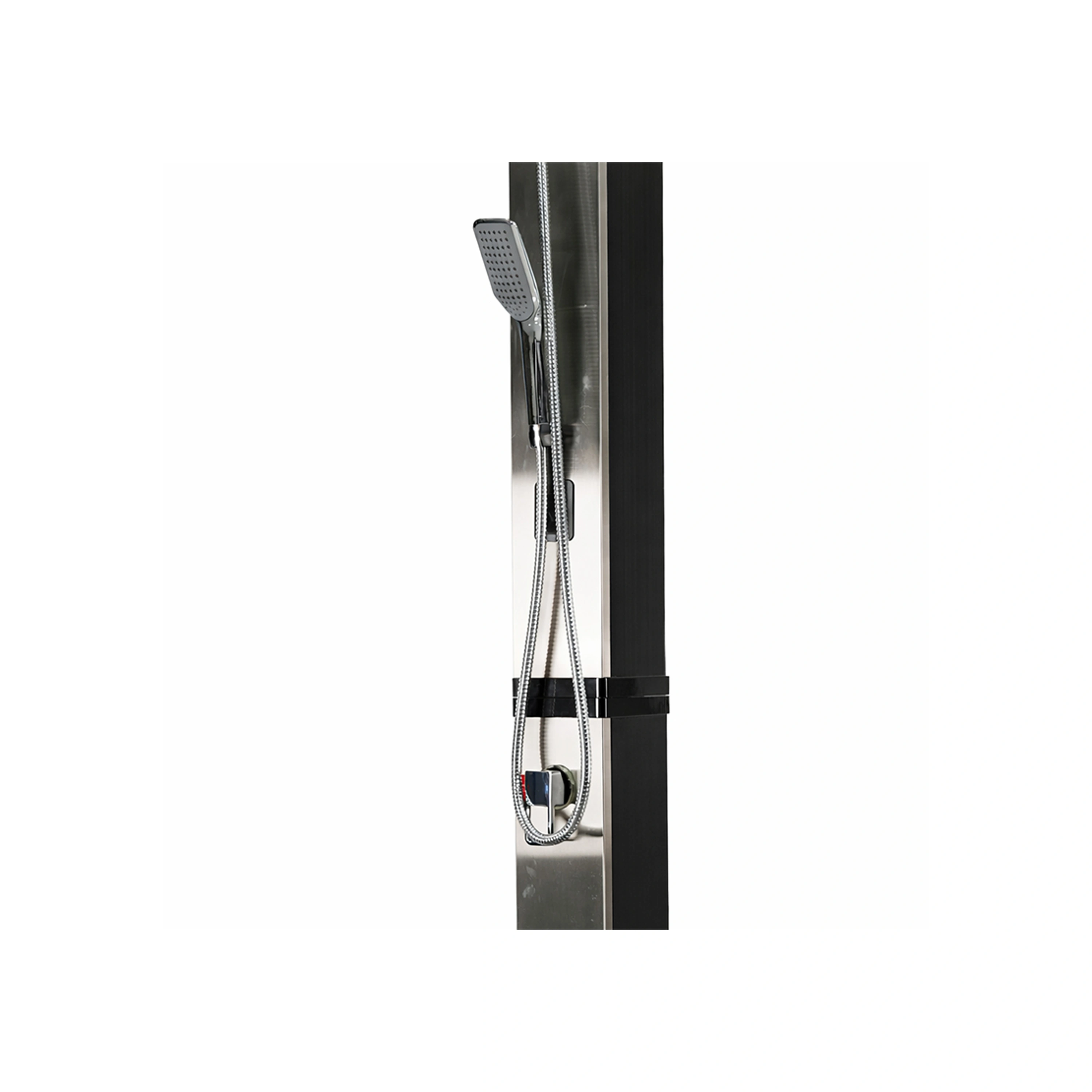 Sprcha je též vybavena ventilem pro možnost nastavení teploty výstupní vody. S ohledem na teplotu vody uvnitř sprchy, která může dosahovat až 60 °C, se doporučuje nejprve natočit ventil vpravo, jeho vychýlením směrem od těla sprchy pustit studenou vodou a následovně vodu domíchat na požadovanou teplotu natáčením ventilu směrem vlevo. Sprcha je vyrobena z plastu.