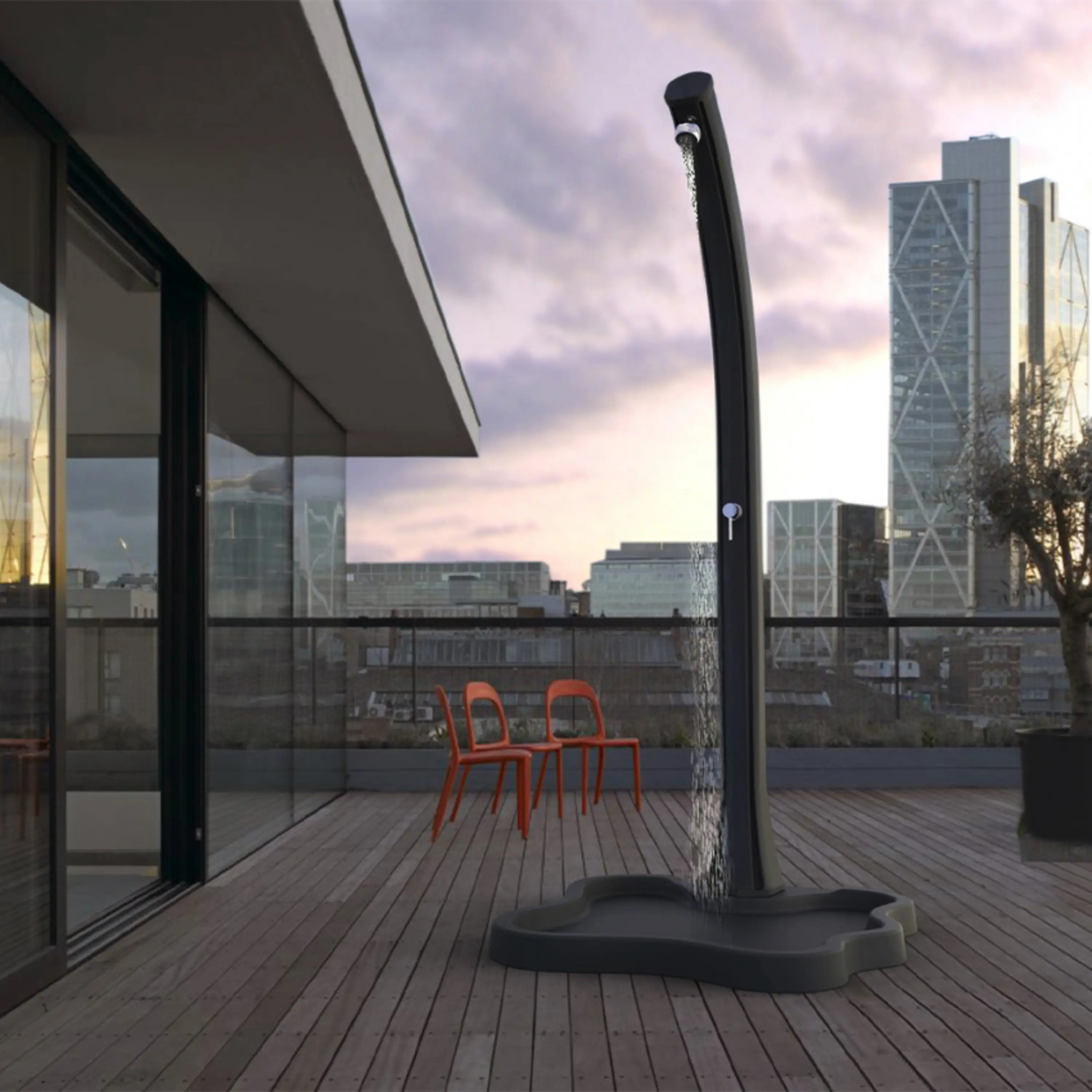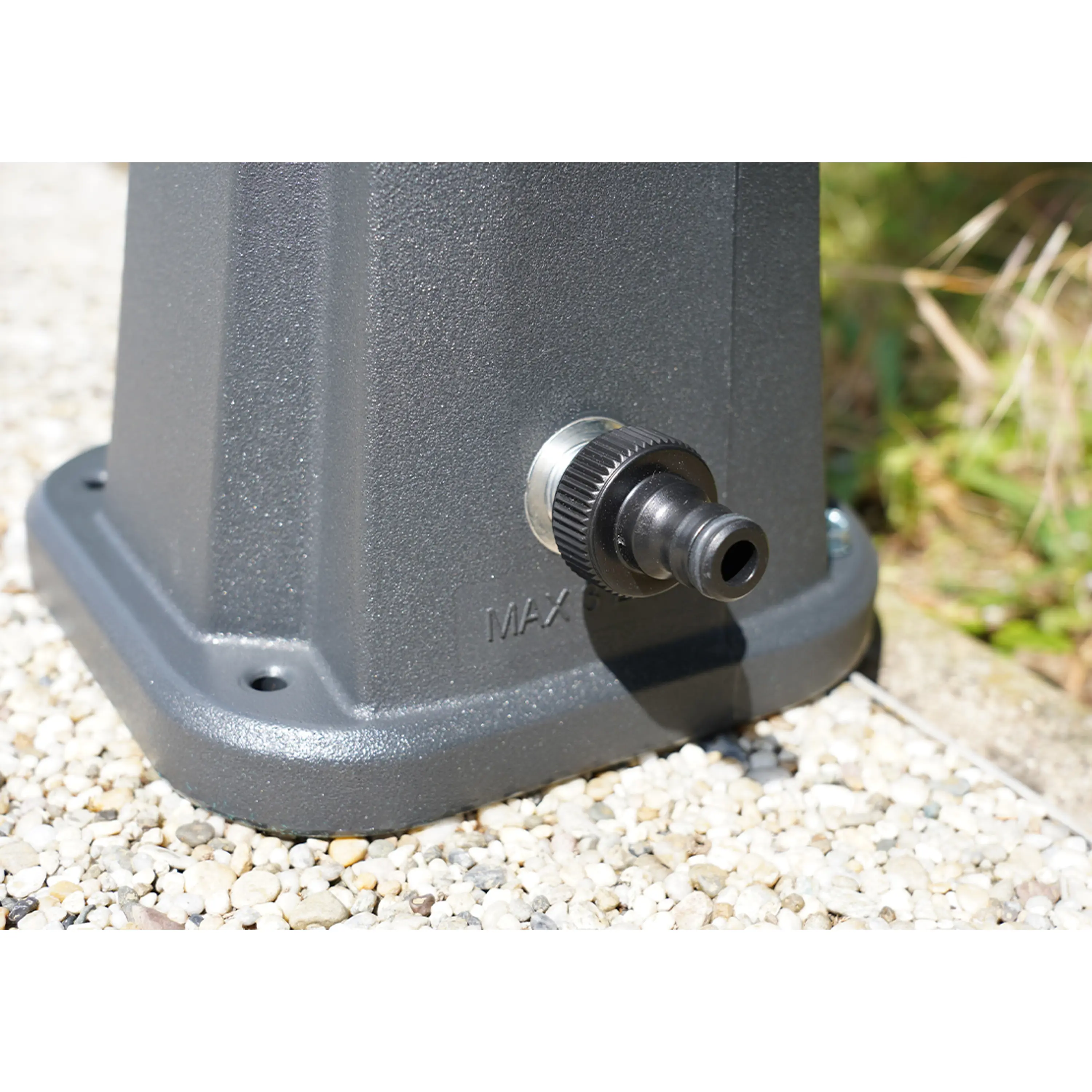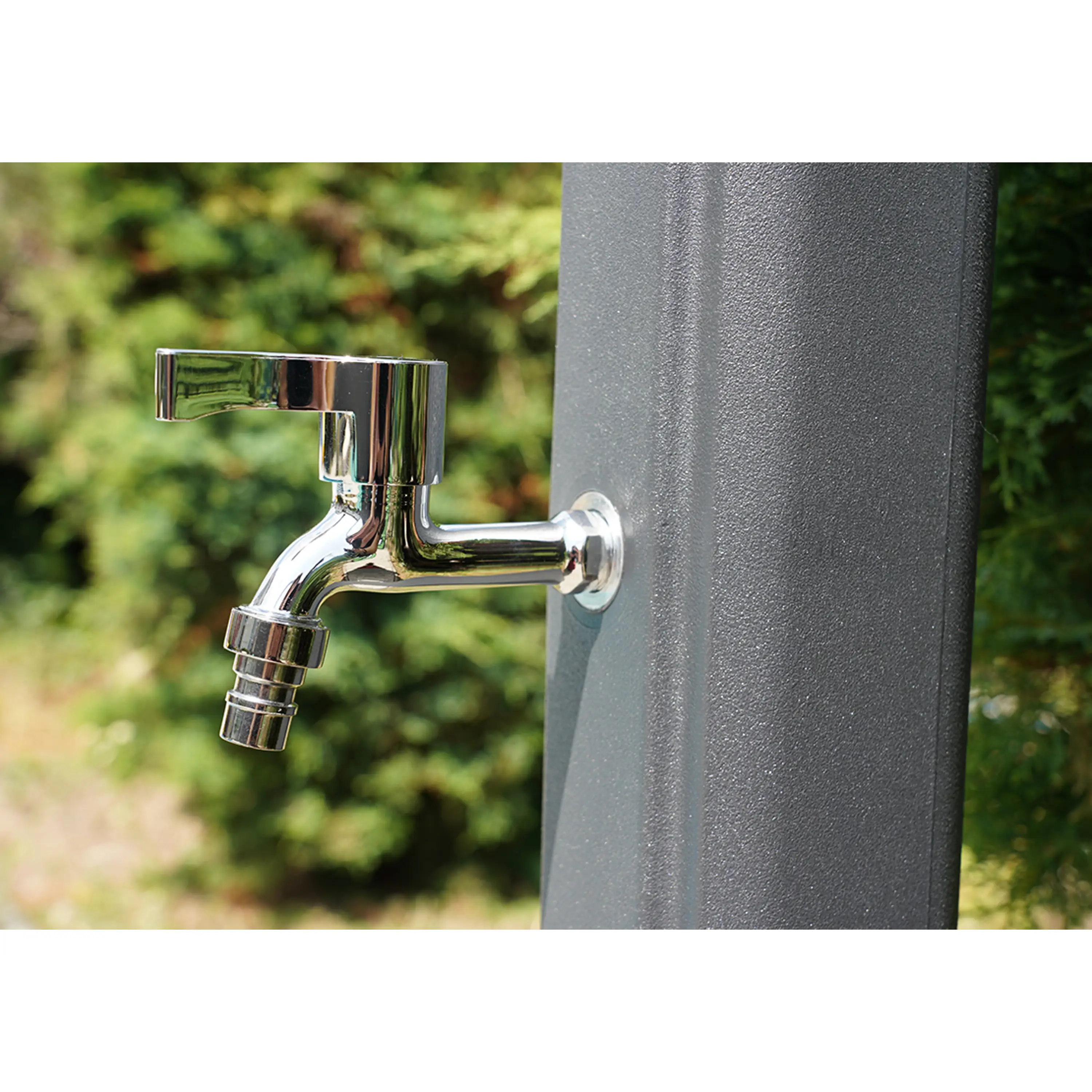 Zahradní sprcha UNO s objemem 23 l zajistí ekologický ohřev vody a tím perfektní pocit pohodlí při sprchování teplou nebo vlažnou vodou. Sprcha má lehkou konstrukci. Dalším benefitem je nastavení teploty vody pákovou baterií a kohoutek na oplach nohou. Zahradní sprchu na Vaší zahradě smontujete velmi rychle a snadno. Materiál: plast.