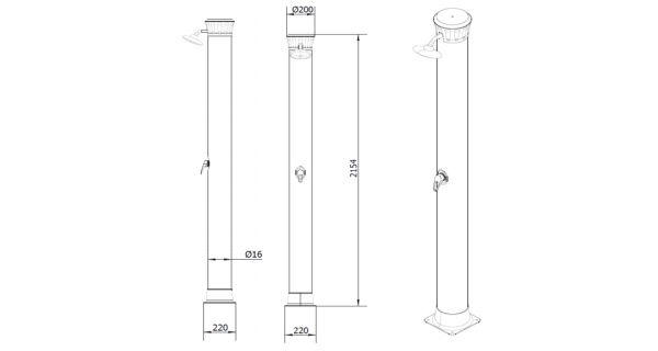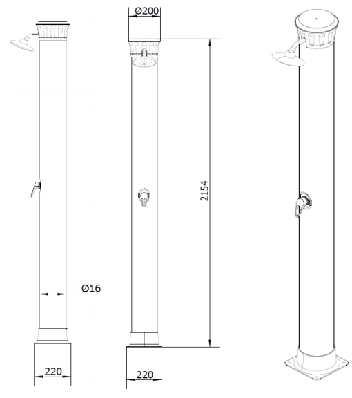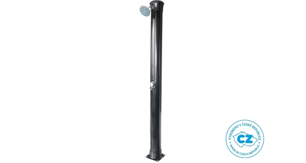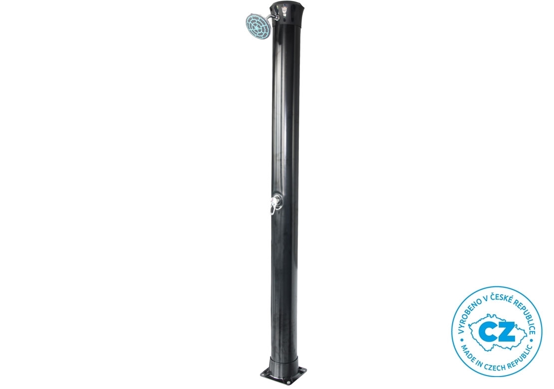 Zahradní sprcha UNO s nebývalým objemem 40l pro venkovní použití. Zajistí ohřev vody přiváděné ze zahradní hadice a tím perfektní pocit pohodlí při sprchování teplou nebo vlažnou vodou. Ohřev vody zajišťuje sluneční záření a tělo sprchy, které funguje jako solární kolektor. Pro sprchování musí být zahradní sprcha stále napojena na vodovodní řad. Není-li napojena, nelze se sprchovat. Sprcha se kotví pomocí 4 šroubů (nejsou součástí balení) pevně k zemi, čímž je zajištěna její perfektní stabilita.