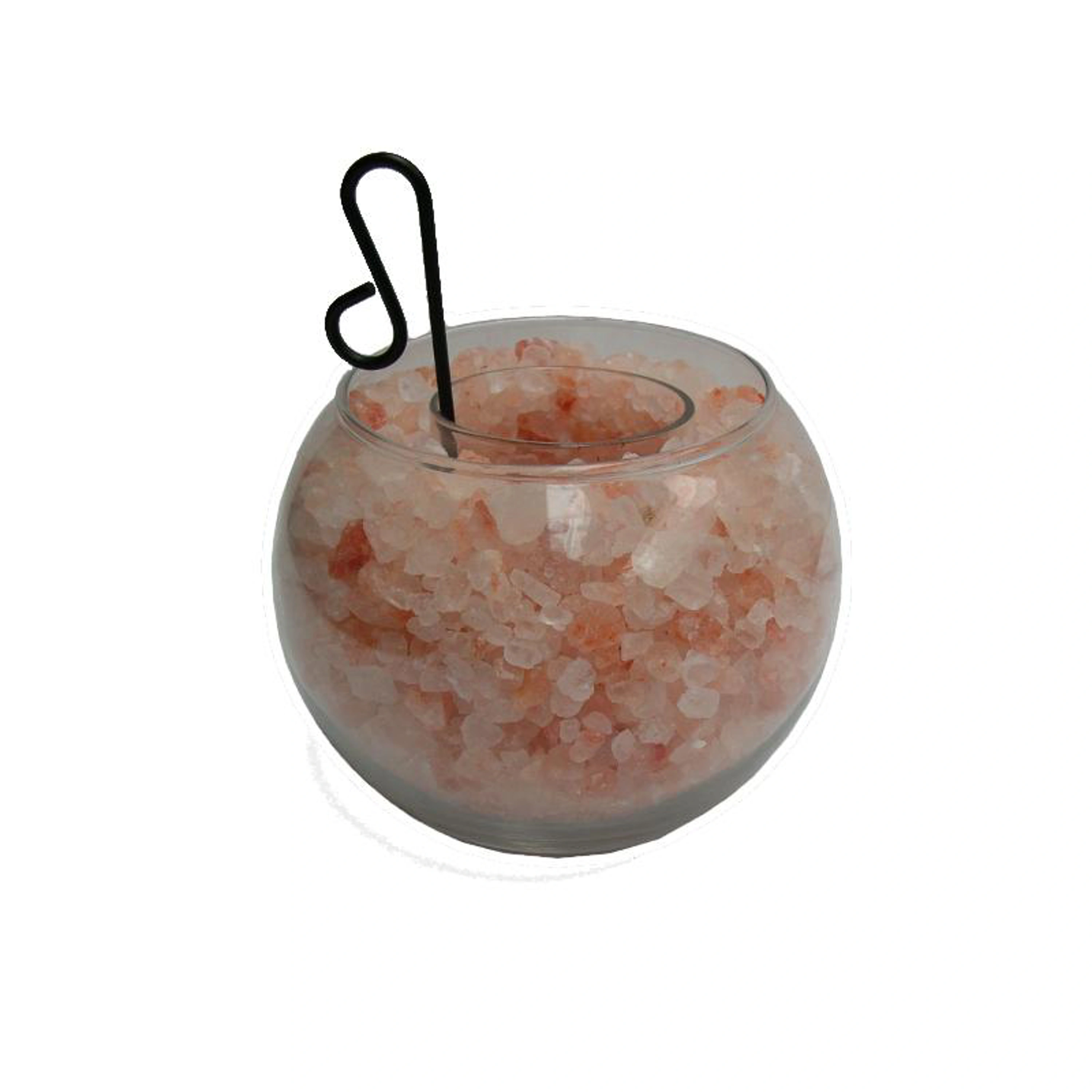 Solný svícen vytváří nejen příjemnou atmosféru, ale i blahodárně působí na lidský organismus. Zvyšuje přirozenou ionizaci a má antiseptické a desinfekční účinky. Svícen je možné použít jako vkusný doplněk domácnosti i kanceláře. Skleněná dóza obsahuje drcenou sůl a otvor pro čajovou svíčku. Kovovým držákem lze svíčku snadno ze svícnu vyjmout.