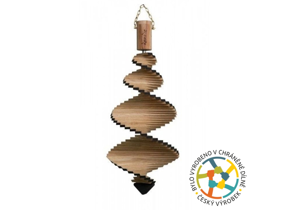 Větrná spirála o velikost 50 cm je vhodná k zavěšení na verandu, strom či balkon. Spirála se pohybuje vlivem větru.