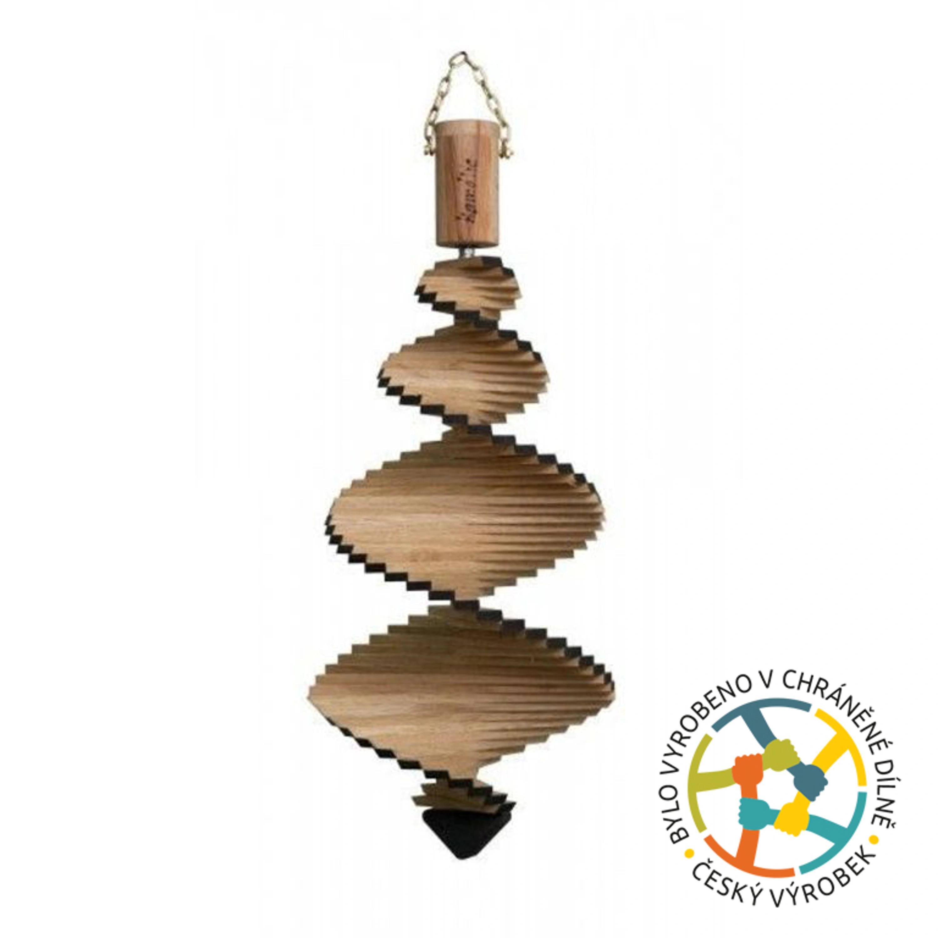 Větrná spirála o velikost 70 cm je vhodná k zavěšení na verandu, strom či balkon. Spirála se pohybuje vlivem větru.