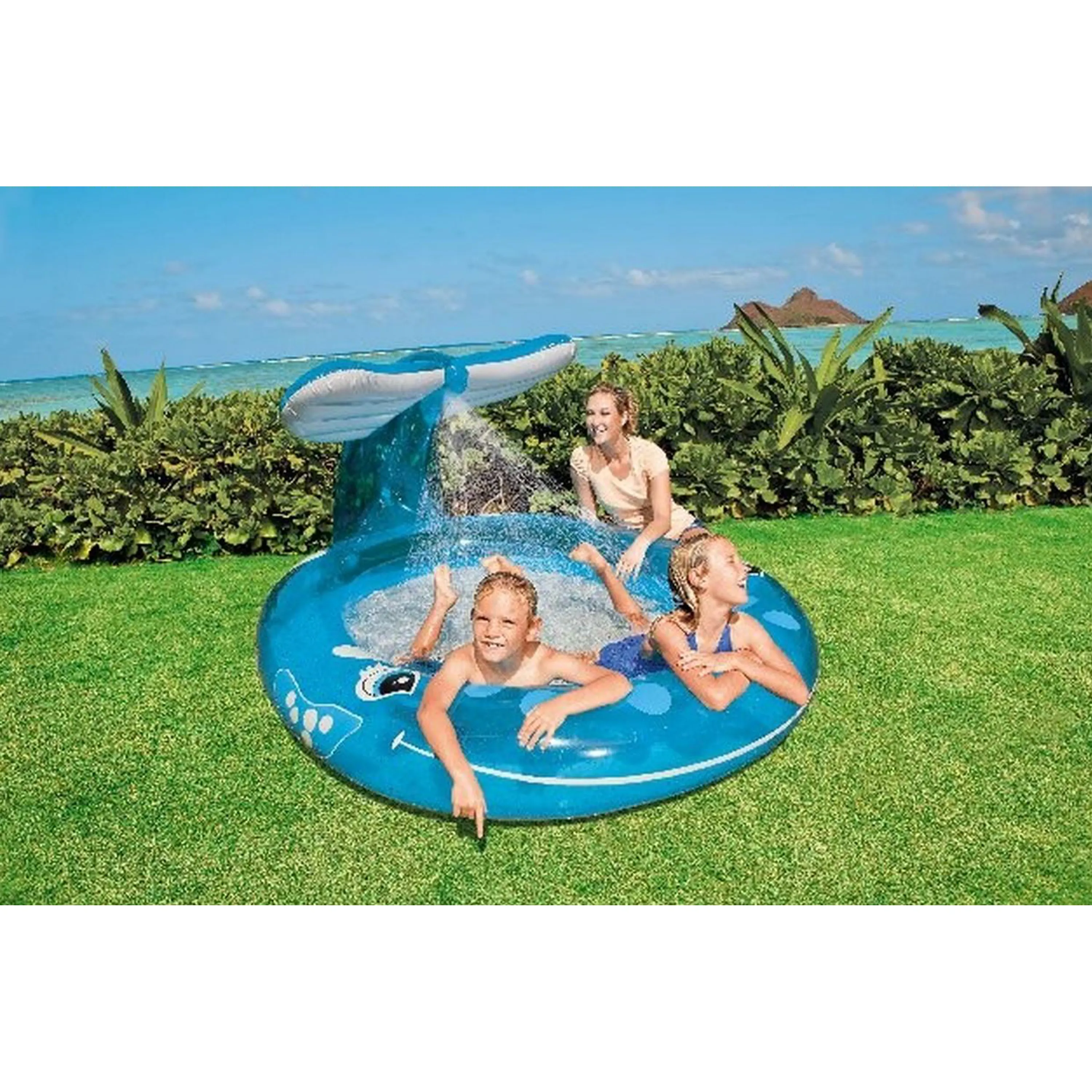 S nafukovací sprchou Velryba se mohou nejmenší kluci a holky v horkých letních dnech skvěle osvěžit. Stačí jednoduše připojit zahradní hadici a hned je o zábavu postaráno. Bazén je vyrobený z materiálů, které splňují nejpřísnější bezpečnostní normy. Proti případnému poškození je vhodné pod bazén dokoupit ochranou podložku.