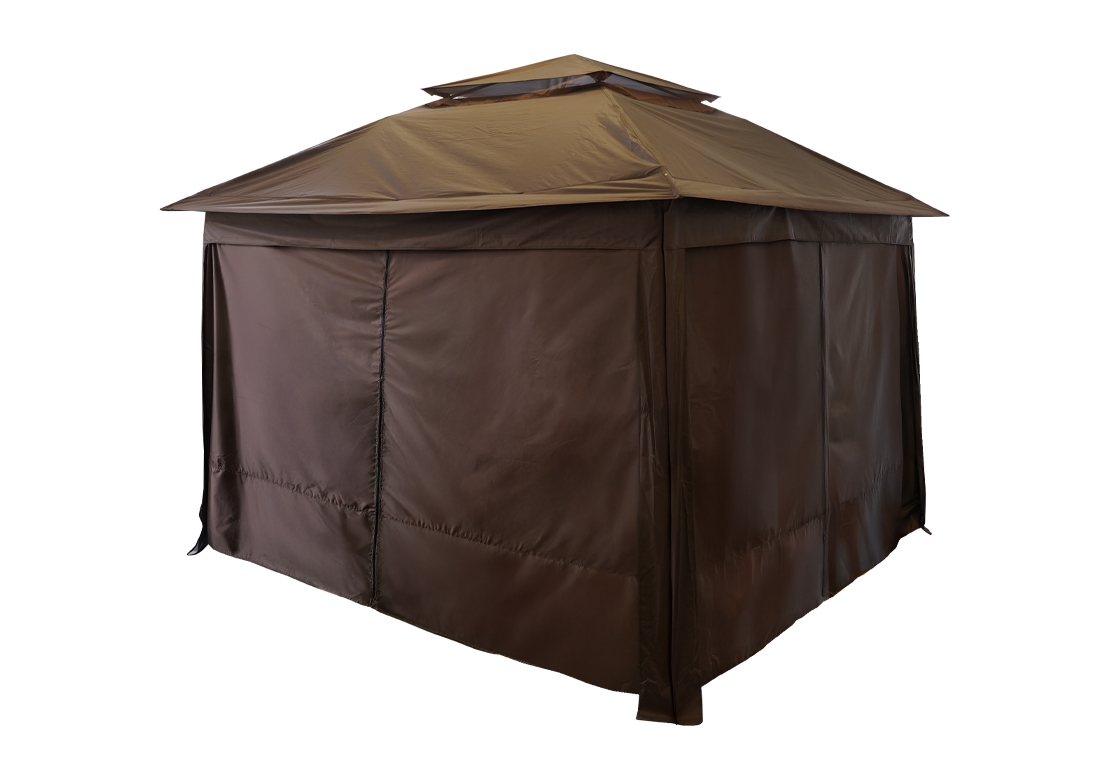 Zavřením altánu pomocí bočních stěn lze omezit průvan a částečně udržet teplo, takže si můžete pobyt venku prodloužit i po západu slunce.
