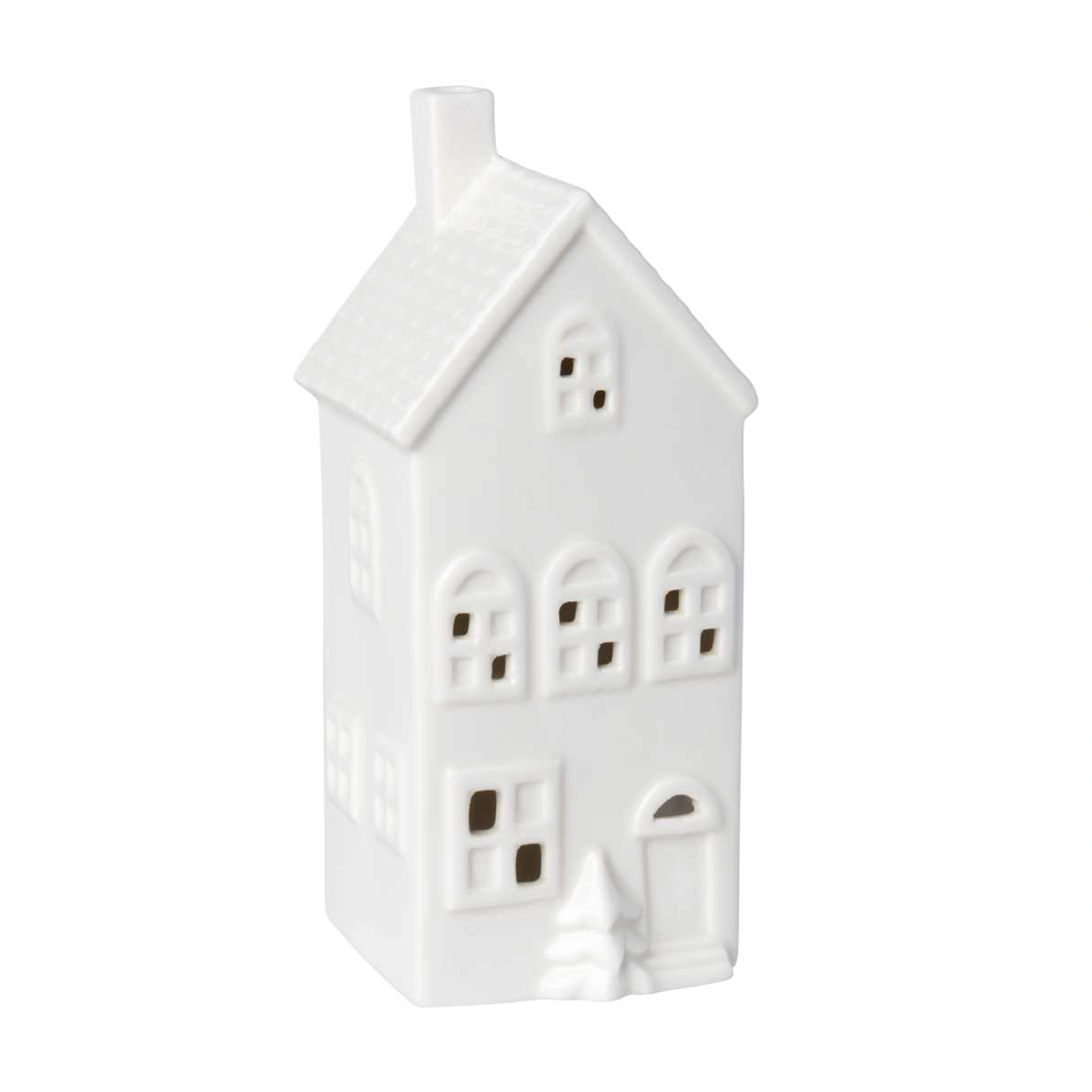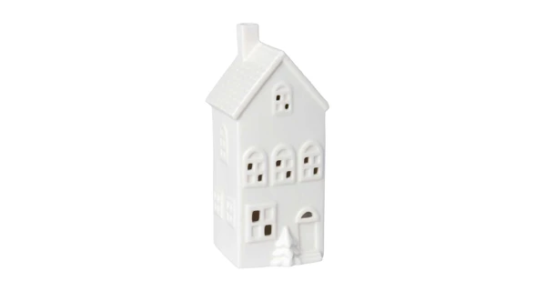 Stojan na svíčku ve tvaru domečku. Vyrobený z porcelánu.