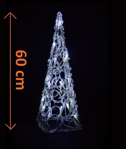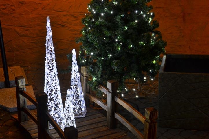 Nápaditá dekorace pro vnitřní i venkovní použití, a to nejen v době vánočních svátků. Kužel je vysoký 60 cm a najdete na něm 30 ks studených bílých LED světel, které se vyznačují dlouhou životností a nízkou spotřebou energie. Jejich světlo Vás nejen zahřeje, ale i potěší na duši.