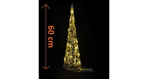 Nápaditá dekorace pro venkovní použití, a to nejen v době vánočních svátků. Kužel je vysoký 60 cm, černý a najdete na něm 30 ks teplých bílých LED světel, které se vyznačují dlouhou životností a nízkou spotřebou energie. Jejich světlo Vás nejen zahřeje, ale i potěší na duši.