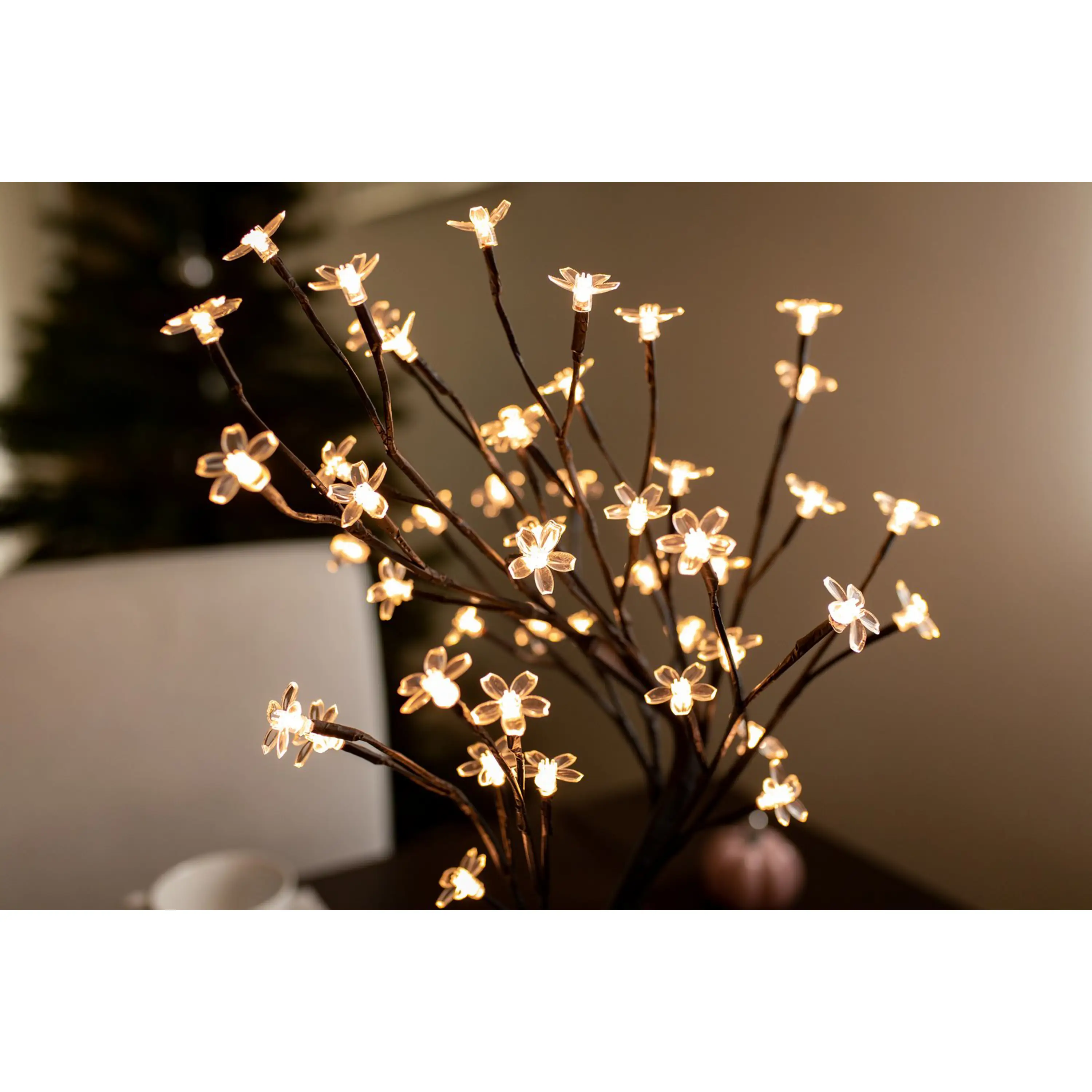 LED dekorace stromku s květy je netradičním doplňkem vánoční atmosféry. Dekorativní stojánek je možné umístit kamkoli si jen usmyslíte.