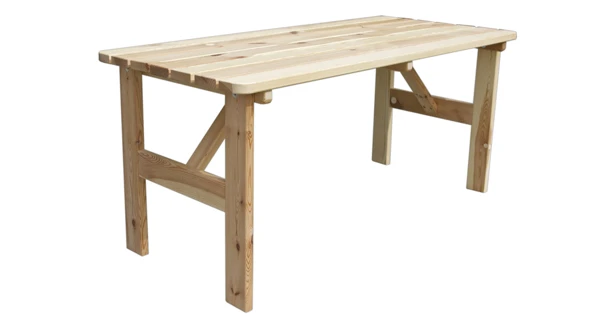 Zahradní, masivní stůl vyrobený z borovicového dřeva v přírodní barvě (není povrchově upraveno). Kvalitní zpracování a certifikát FSC zaručuje dlouhou životnost.