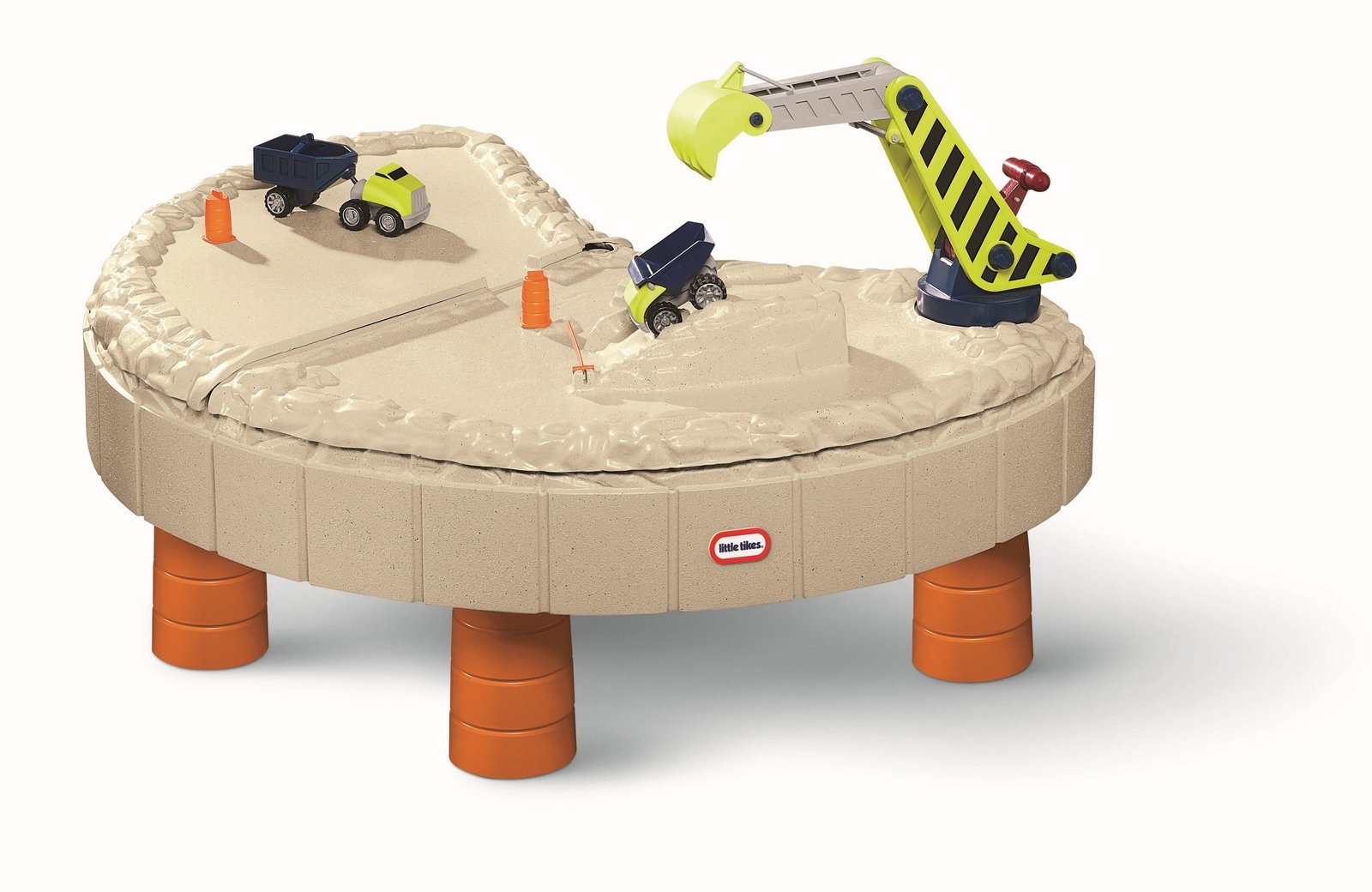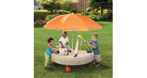 Hrací stolek je podepřen čtyřmi sloupy a je opatřen slunečníkem, který ocení děti při venkovních radovánkách převážně v parných dnech. Hrací stolek je rozdělen na dvě části, a to na bazének a pískoviště. Pro ještě větší zábavu je součástí stolku také velký interaktivní jeřáb, který se velmi snadno ovládá. Balení navíc obsahuje nákladní auta a mosty. Víko lze využít k vícero účelům. Tento zábavný hrací stolek je vhodný pro děti od 2 do 6 let.