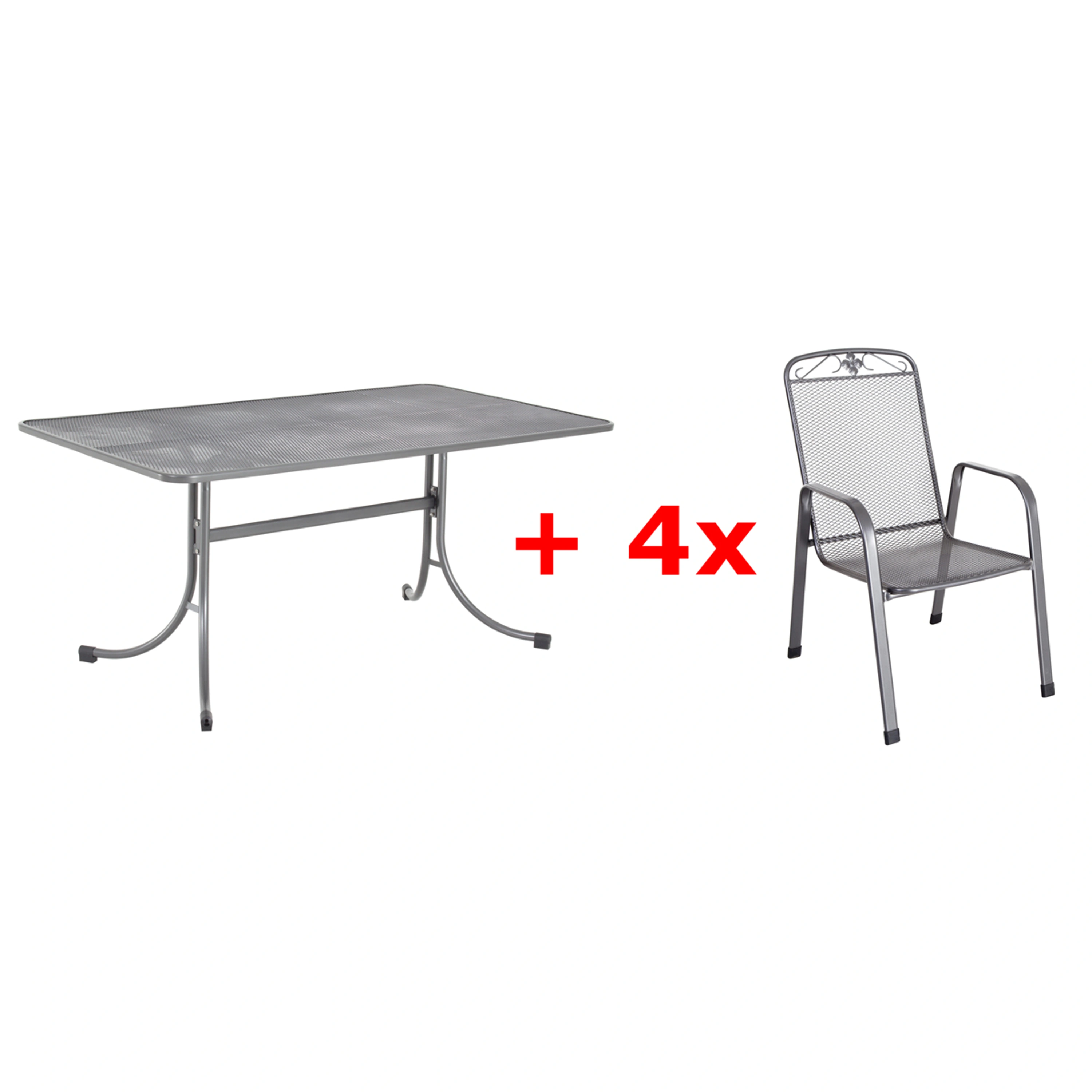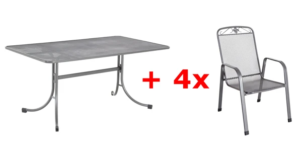 Elegantní stůl s deskou s oky ve tvaru kosočtverce je vybaven pevným kovovým rámem. Stůl ve tvaru obdélníku s oblými rohy vytvoří vkusnou sestavu například v kombinaci s ostatními tahokovými křesly. Nábytek odolný vůči vodě i slunečnímu záření je zcela bezúdržbový.