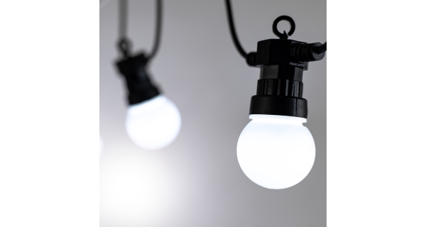 Světelný párty řetěz s žárovky rozjasní vaší místnost i zahradu. Řetěz má 10 bílých žárovek, které disponují 50 LED.
