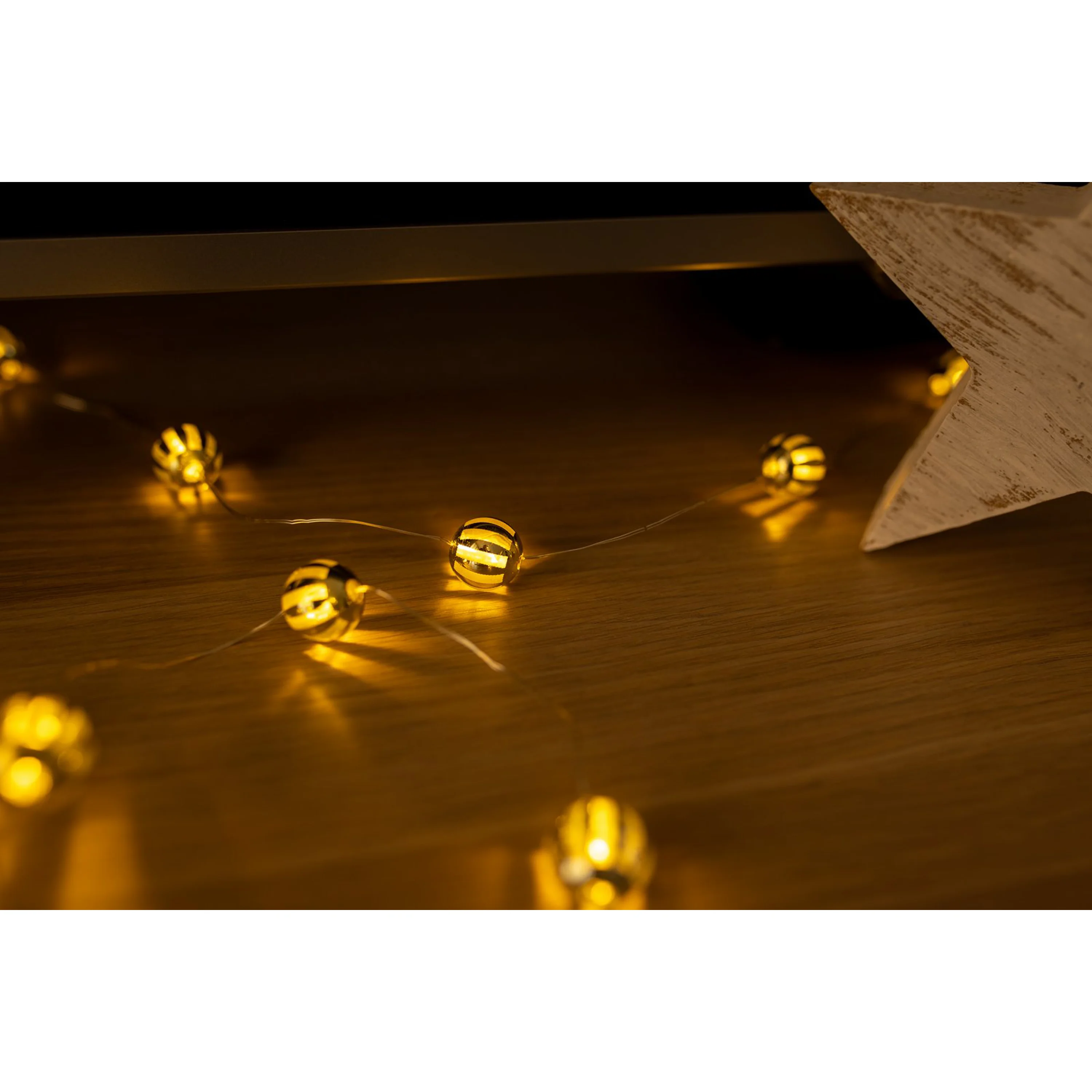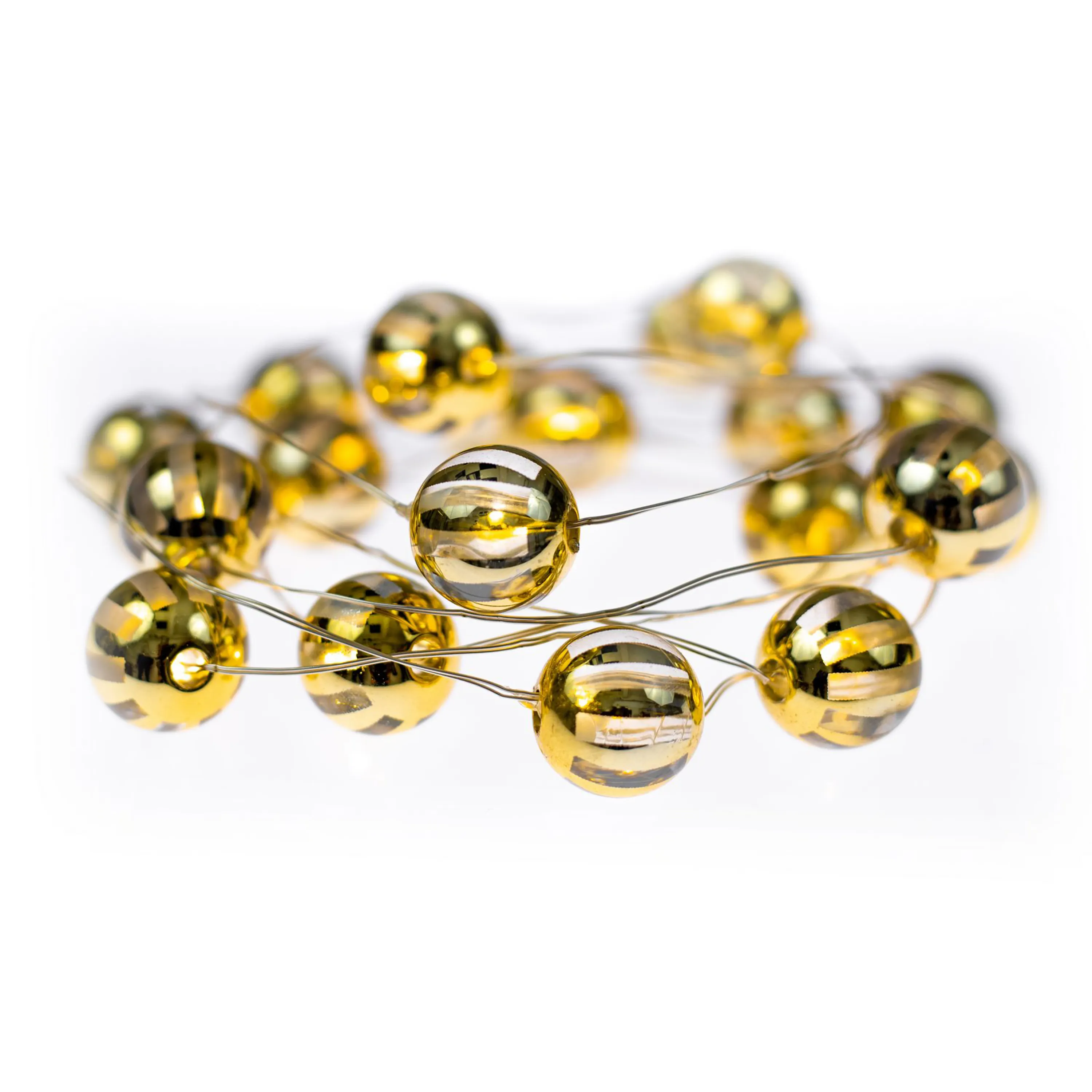 Svítící struna v designu zlatých kuliček rozzáří váš interiér. Svítící dekorace vytvoří příjemnou vánoční atmosféru.