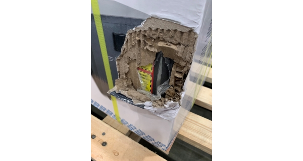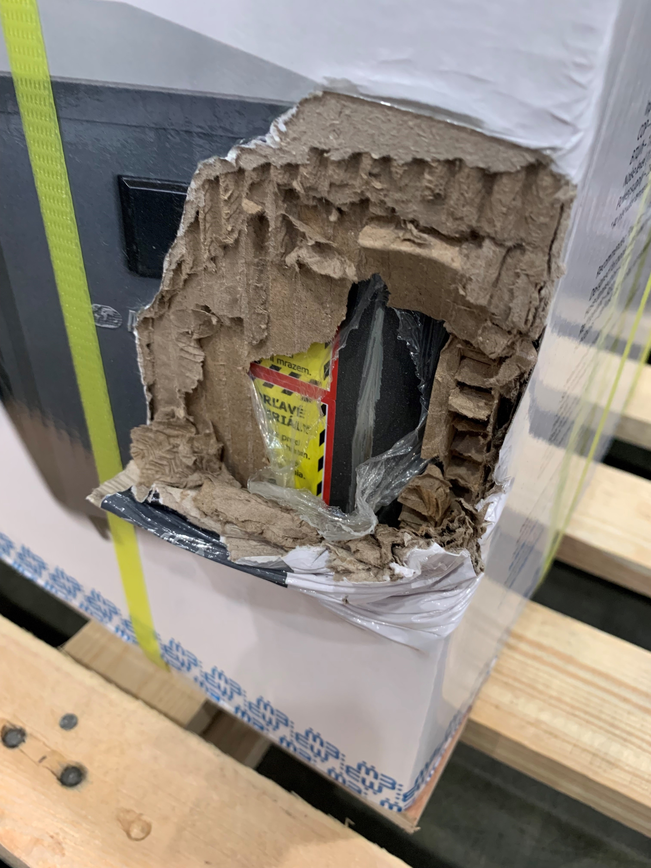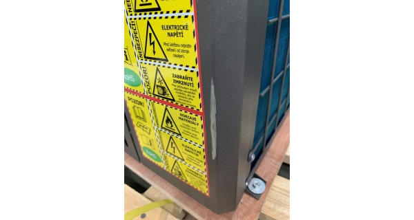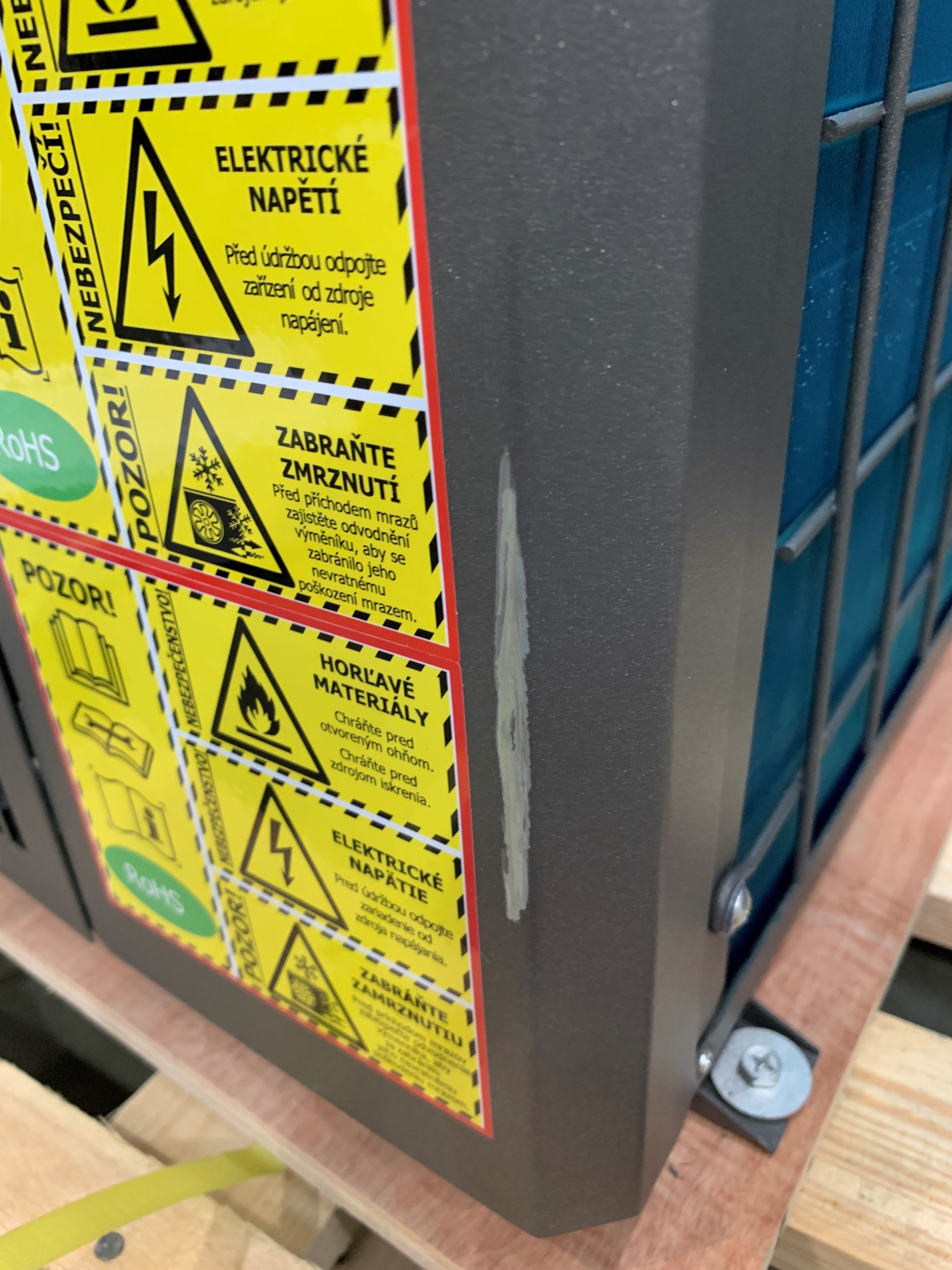 Tepelné čerpadlo bylo poškozeno při manipulaci. Má protržený obal a odřený bok skříně.