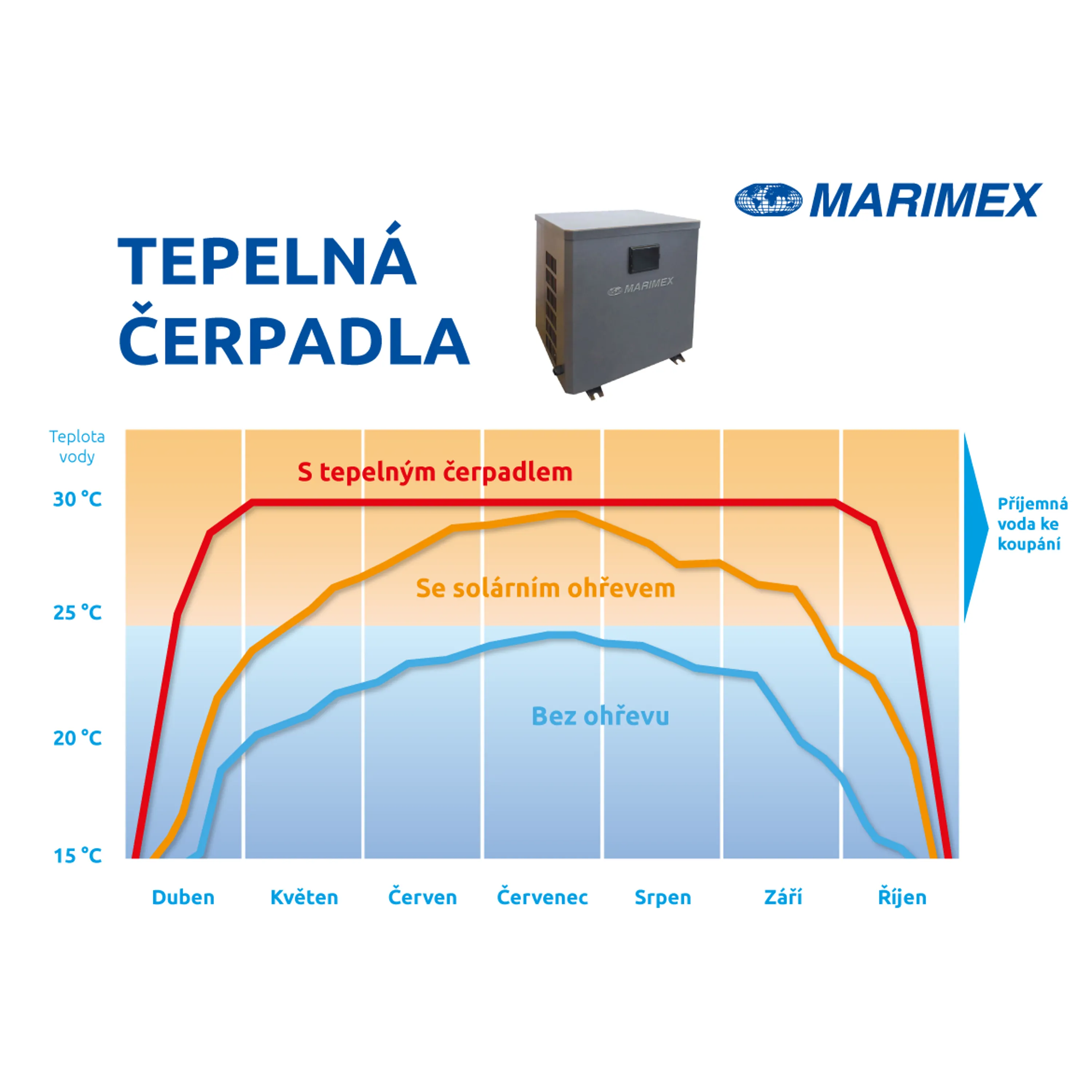 Tepelné čerpadlo Marimex Premium 3500 je vhodné pro ohřev vody v bazénech do 15 m3. Čerpadlo zajistí efektivní ohřev vody i bez slunečního záření. Výhodou je snadná obsluha a nenáročná údržba. Toto čerpadlo disponuje funkcí odmrazování, má LED displej a nabízí možnost připojení přes Bluetooth.