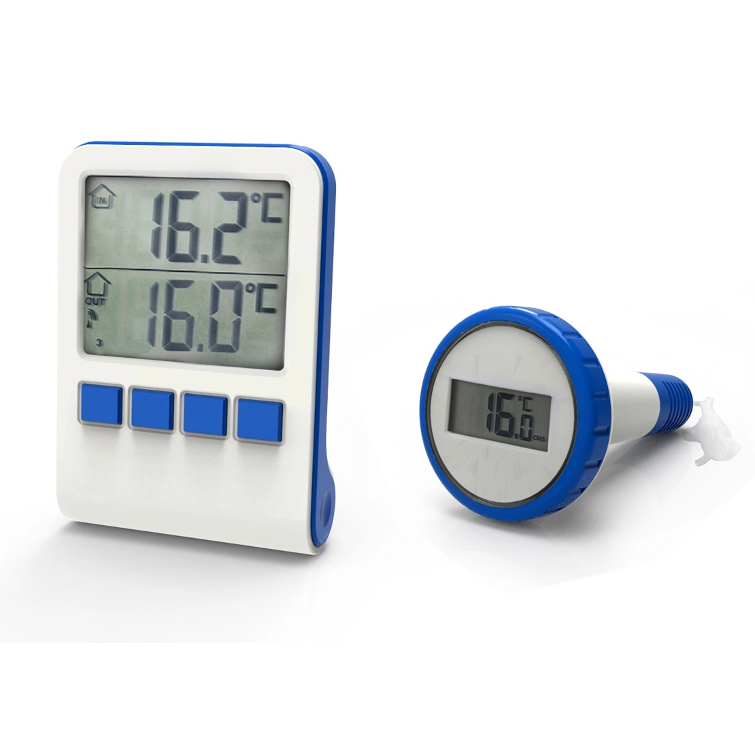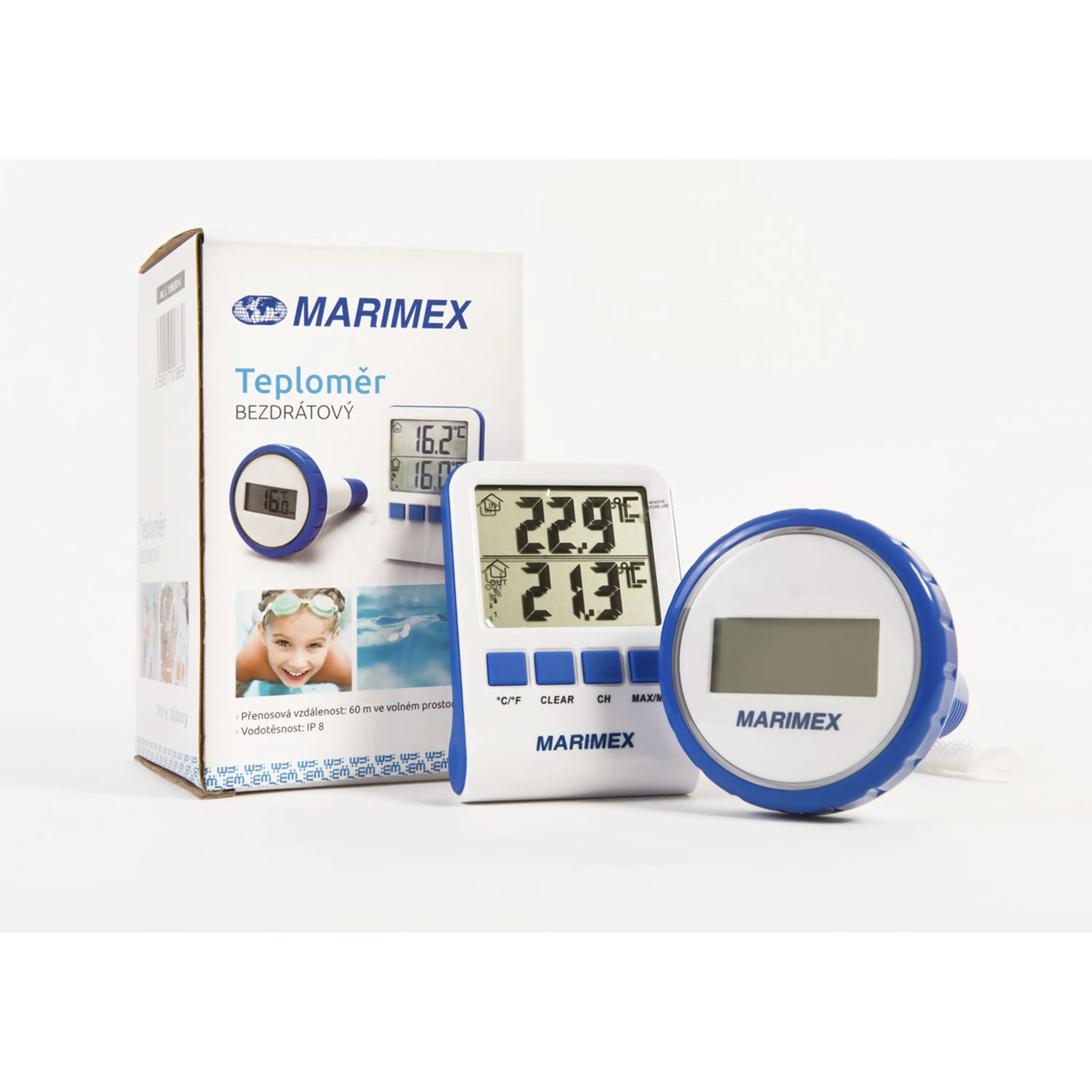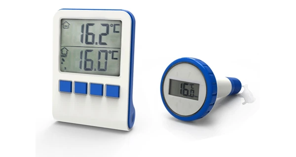 Bezdrátový teploměr určený pro měření teploty bazénové vody i vzduchu.
