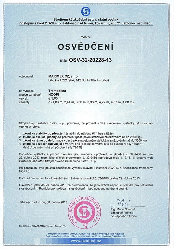 Trampolíny jsou určené pro náročné pohybové aktivity, proto klademe důraz na jejich bezpečnost a spolehlivost. Použití kvalitních materiálů a moderních technologií při výrobě řadí naše trampolíny mezi nejbezpečnější a nejspolehlivější na českém trhu.