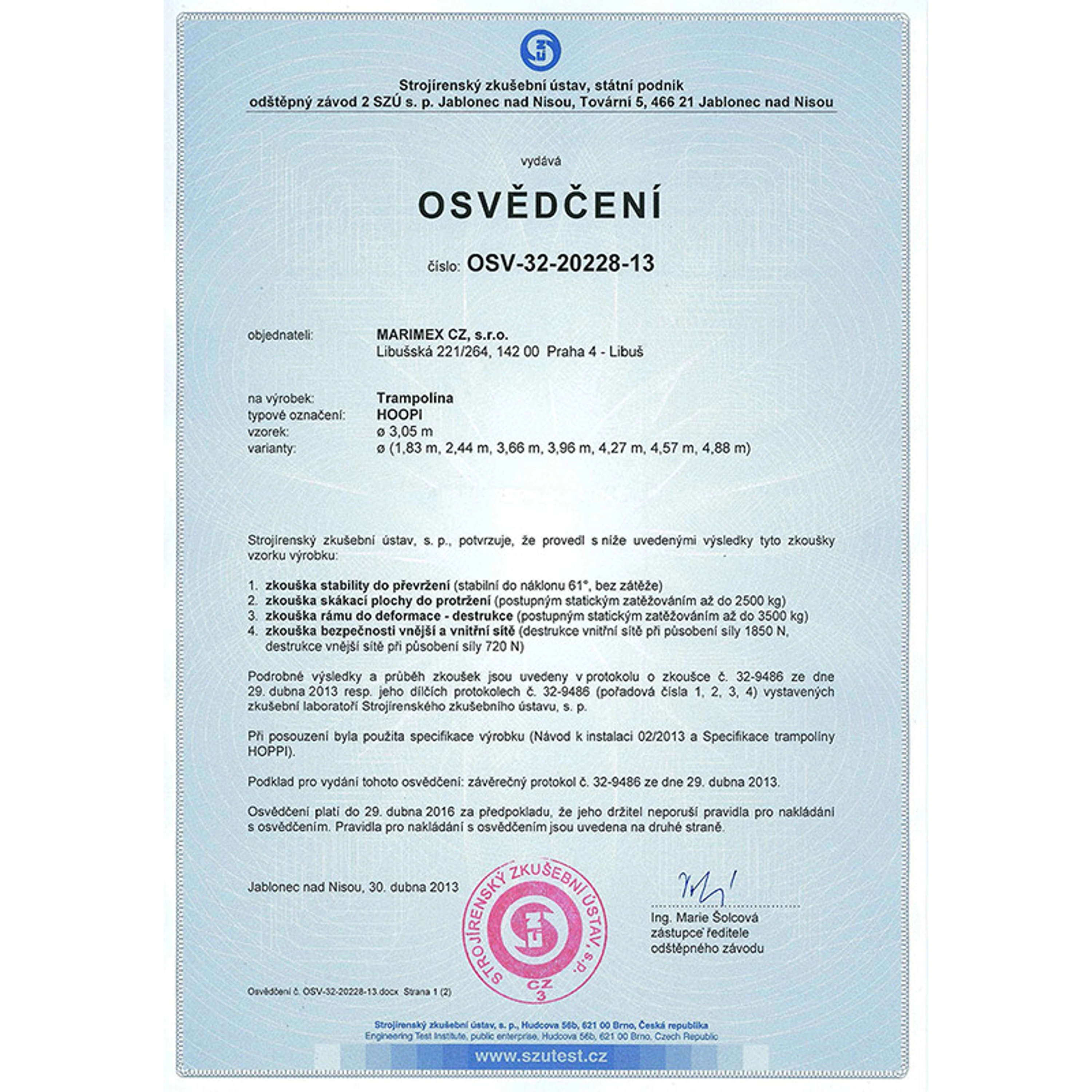 Všechny naše trampolíny splňují přísné bezpečností normy EN71 německé zkušebny TÜV NORD a prošly testem PAHs.