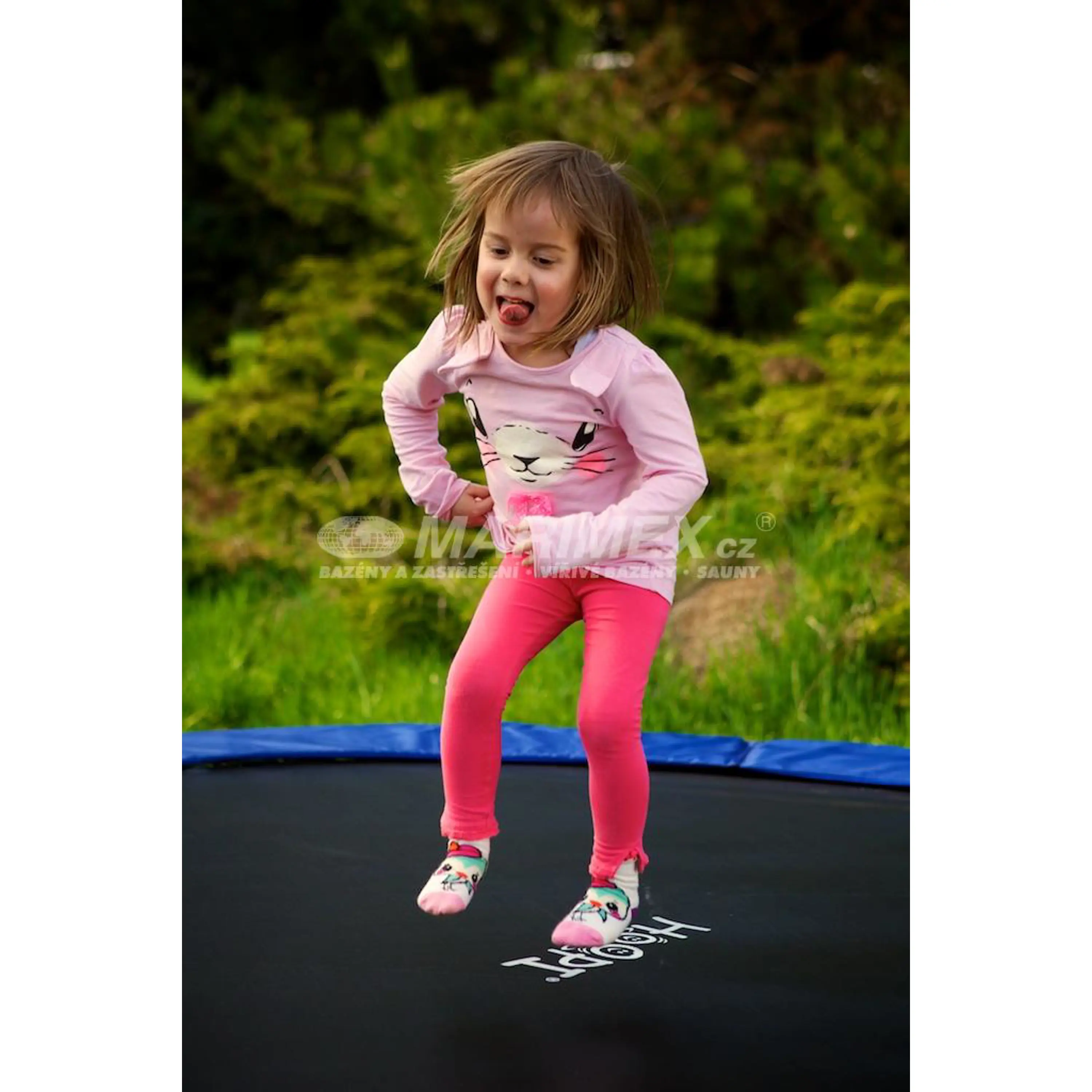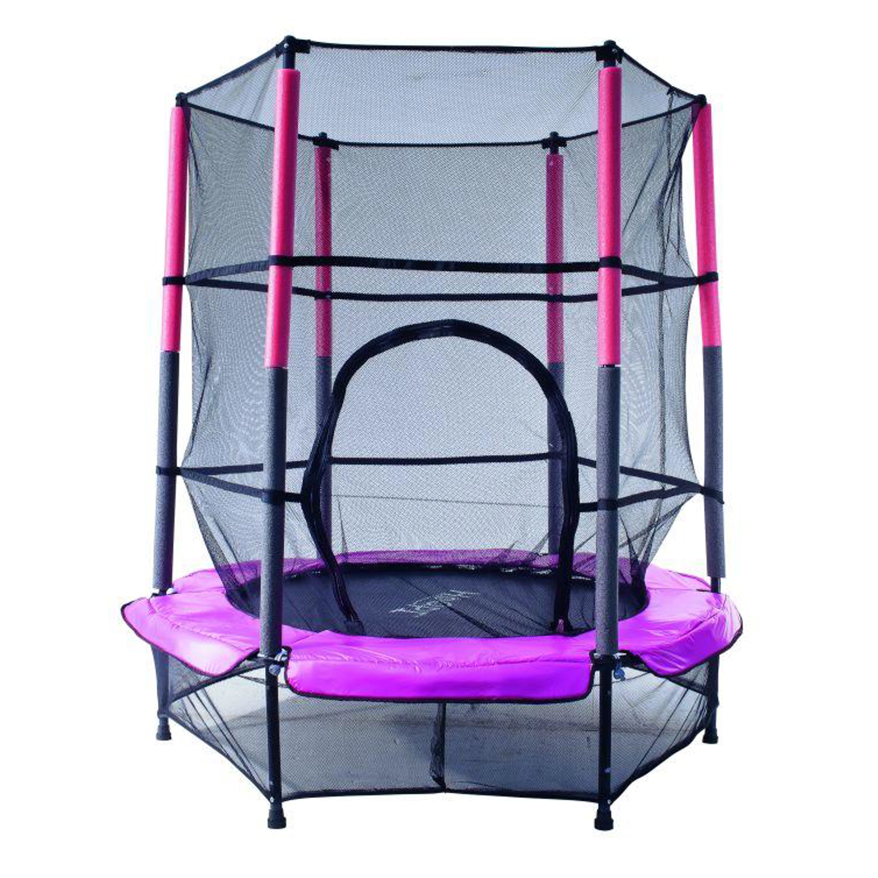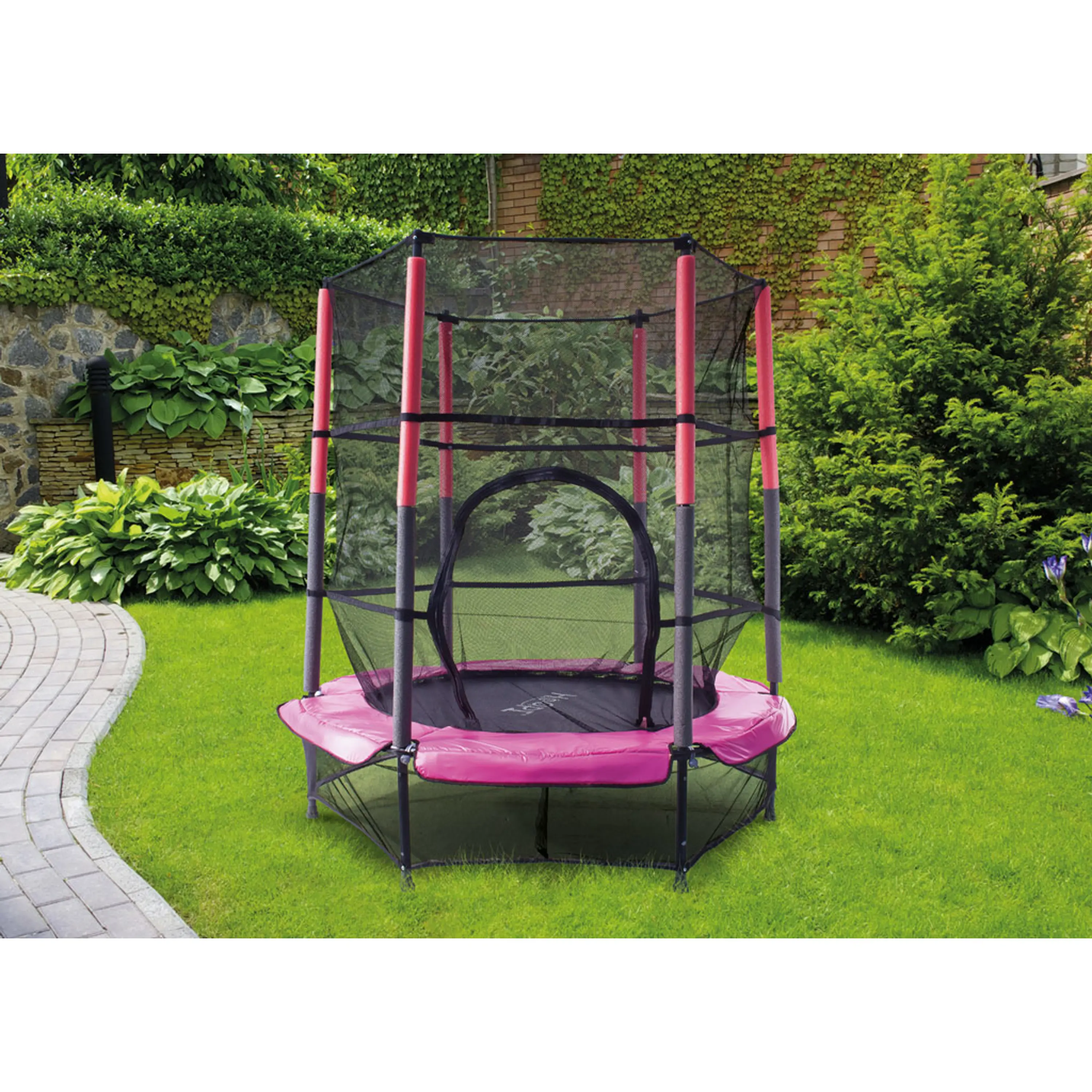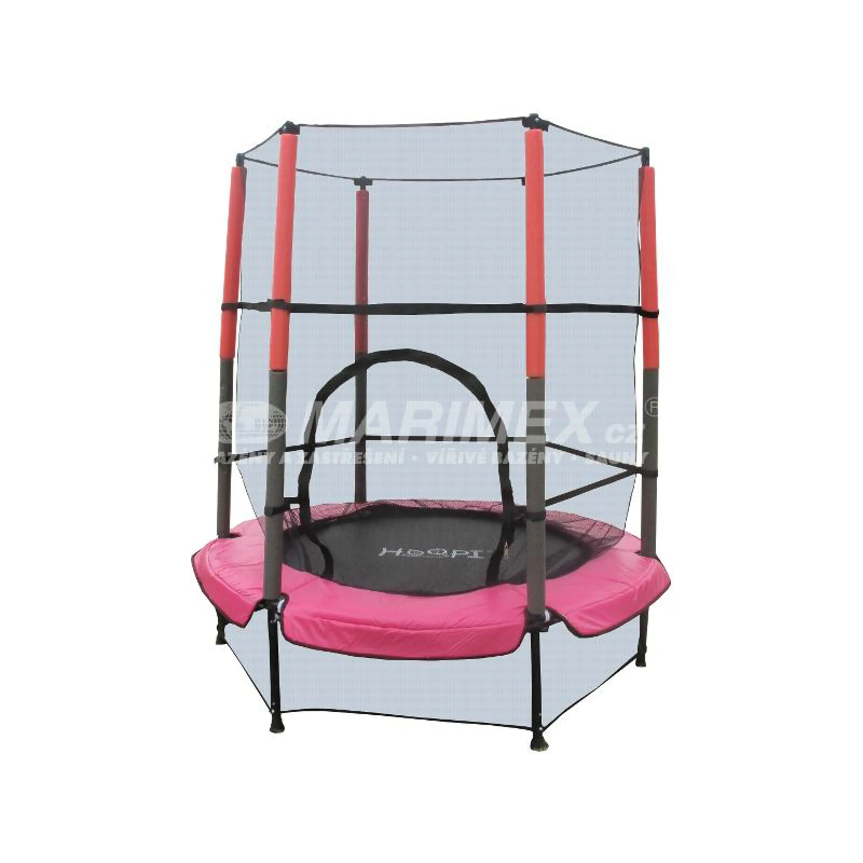 Trampolína Marimex Kids růžová má průměr 1,4 m, je dodávána včetně vnitřní ochranné sítě. Hlavní výhodou je bezpružinový systém uchycení skákací plochy, která je k rámu trampolíny připevněna třiceti elastickými gumami. Tento způsob uchycení je spolehlivý a bezpečný, což uvítají hlavně malé děti, pro které je trampolína určená. Dokonalou stabilitu trampolíny zajišťuje 6 tyčových nohou.