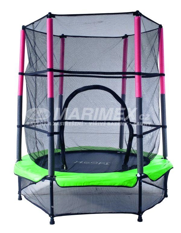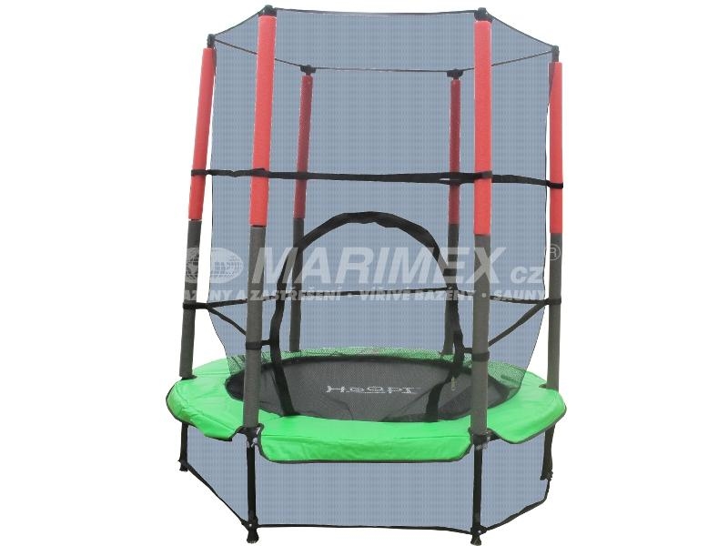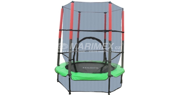 Trampolína Marimex Kids zelená o celkovém průměru 1,4 m, včetně vnitřní ochranné sítě, potěší nejmenší děti a především malé rošťáky. Dokáže unést děti do 50 kg váhy, předností tohoto modelu je bezpružinový systém. Skákací plocha není ukotvena klasickými pružinami, ale 30 elastickými gumami. O stabilitu se postará celkem 6 tyčových nohou.
